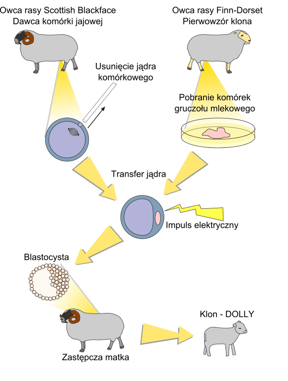 Standardowa technika klonowania, znana jako transfer jądrowy komórki somatycznej (SCNT) – polegająca na przeniesieniu jądra komórki organizmu do komórki jajowej, której jądro zostało usunięte – zazwyczaj skutkuje wyjątkowo niskim współczynnikiem urodzeń i przeżywalności sklonowanych zarodków. Tak właśnie przyszła na świat w 1996 r. owca Dolly, choć skuteczność tej metody u naczelnych była szczególnie ograniczona.