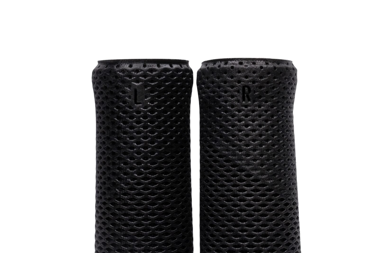 Mimo tej złożonej budowy 3DXC wcale nie jest ciężki. Para w mniejszym rozmiarze waży około 65 gramów, większa wersja 71 gramów. To wartości bardzo bliskie popularnym piankowym gripom, a dostajemy coś o wyższej trwałości, lepszej odporności na rozdarcia i z dodatkowym zabezpieczeniem końcówki kierownicy. Średnice to 31,5 oraz 34,5 milimetra, długość około 132 milimetrów. Gripy są przypisane osobno do lewej i prawej ręki, co pozwala lepiej dobrać kształt pod ułożenie dłoni. Kolorystyka jest za to ascetyczna. Na razie do wyboru jest po prostu czerń.