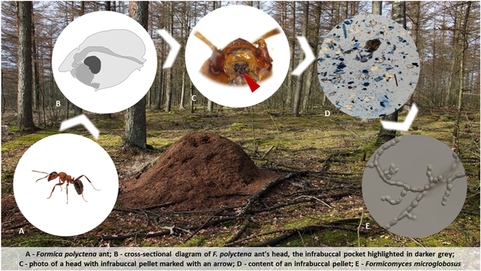 Mrowiska tych zwierząt możemy napotkać m.in. w lasach na terenie polskich nizin. Badacze postanowili zebrać reprezentacyjną próbkę ze szczytu kopca w lesie mieszanym niedaleko wsi Pilawa w powiecie piaseczyńskim (województwo mazowieckie). Następnie wyekstrahowano zawartość tzw. kieszonki policzkowej u mrówek, aby zbadać materię grzybową.