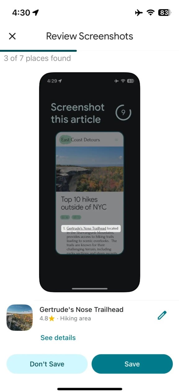 Zrzuty ekranu miejsc zamienią się w zapisane lokalizacje w Mapach Google na iOS