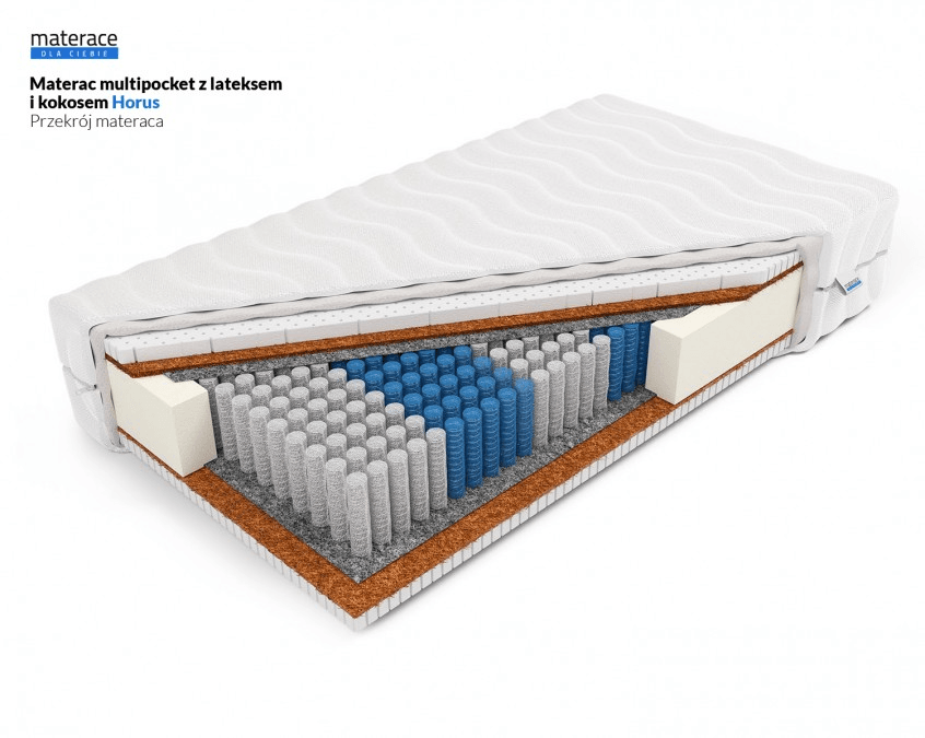 HORUS to model dla osób szukających wyjątkowo solidnego i trwałego podparcia. Konstrukcja multipocket zapewnia ogromną liczbę sprężyn pracujących niezależnie, natomiast warstwa lateksu i kokosa zwiększa higienę oraz twardość materaca. To doskonała propozycja dla osób o wyższej wadze lub preferujących stabilniejsze podłoże.