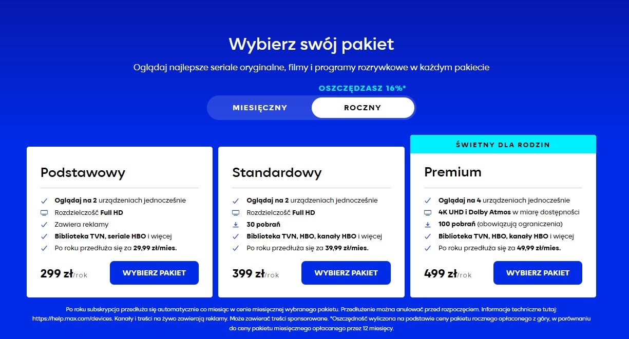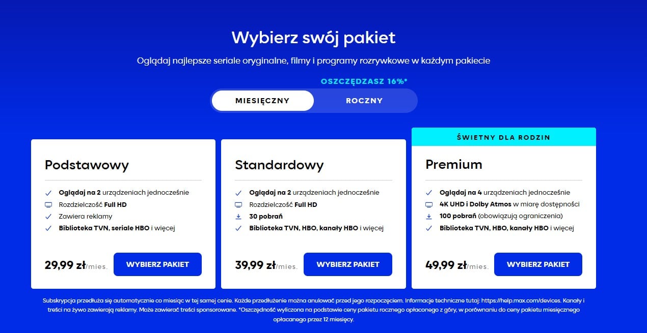 - Pakiet Standardowy – 29,99 zł miesięcznie lub 299 zł rocznie.