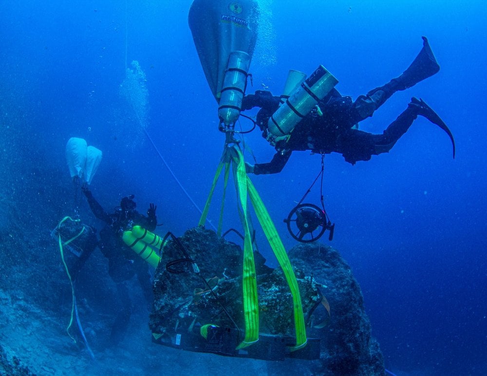 Dzięki usunięciu części spoczywających na dnie głazów naukowcy zyskali dostęp do fragmentów, które wcześniej były niewidoczne. Natrafili między innymi na marmurową głowę brodatej męskiej postaci, której wygląd i rozmiary mogą przywodzić na myśl Heraklesa Farnezyjskiego. Archeolodzy przypuszczają, iż odnaleziona teraz głowa stanowi brakujący element układanki sprzed ponad stu lat, kiedy to odnaleziono posąg pozbawiony głowy. Niedawno natrafili również na cokół marmurowego posągu z dolnymi fragmentami nóg.