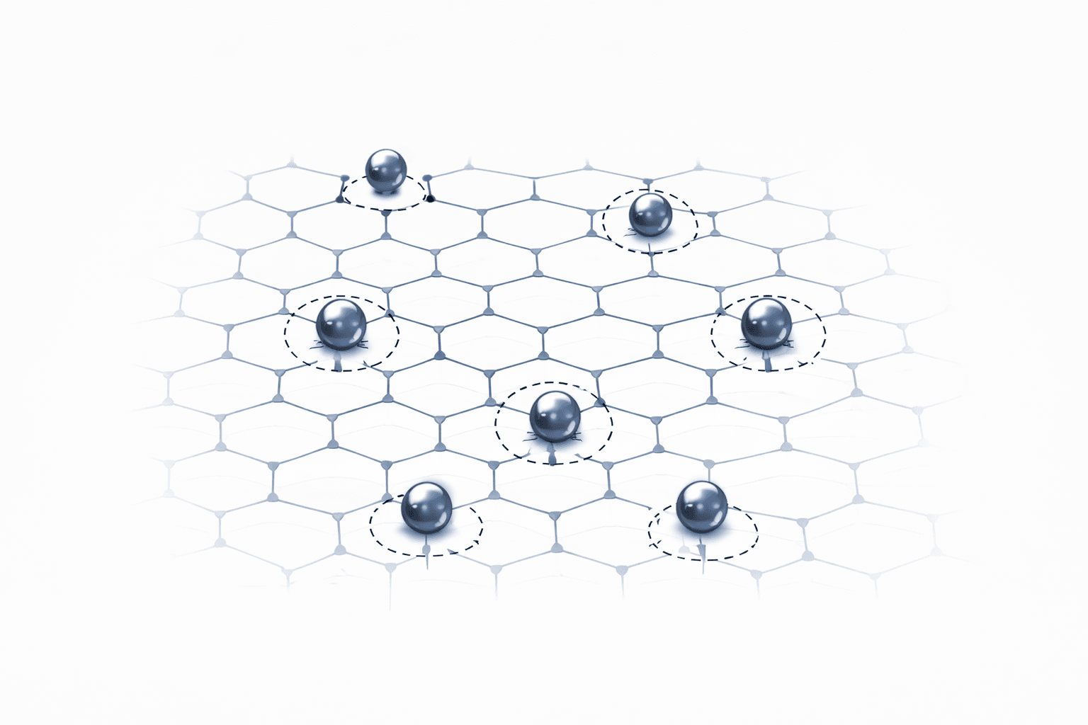 Klucz jest prozaiczny, choć efekt brzmi nieprawdopodobnie: nieruchome atomy wiążą się mocno z defektami w podłożu (np. miejscami braków w sieci grafenu). Taki defekt działa jak punkt zaczepienia — nawet jeśli dookoła metal jest już cieczą, część atomów zostaje przypięta i przestaje uczestniczyć w tym ruchliwym chaosie. Co ważne, liczbą takich punktów dało się sterować, m.in. przez modyfikowanie podłoża wiązką elektronów.
