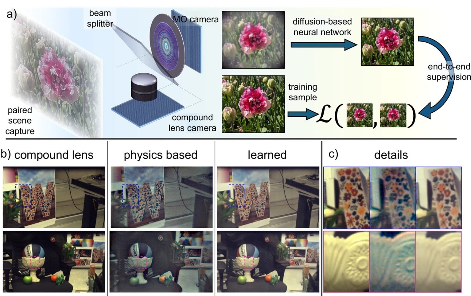 Proces optymalizacji przebiega dwuetapowo. Metalens najpierw maksymalizuje intensywność ogniskową dla szerokiego zakresu długości fal światła widzialnego od 450 do 650 nanometrów, co zapewnia rozszerzoną głębię ostrości. Następnie cała struktura jest współoptymalizowana z modelem uczenia maszynowego, który z kolei uczy się, jak najlepiej wykorzystać dane z sensora.