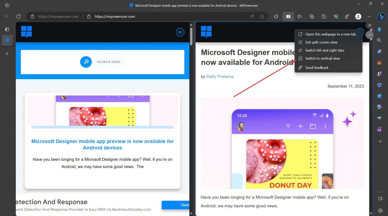 Tryb podzielonego ekranu w Microsoft Edge to duże ułatwienie. Zamiast otwierać dwa okna przeglądarki lub przeskakiwać pomiędzy kartami, bez problemu możemy otworzyć dwie witryny obok siebie, korzystając właśnie z tej funkcji, wybierając ją z paska narzędzi lub wciskając Ctrl + Shift + 2. Trzeba jednak wspomnieć, że funkcjonalność miała pewne ograniczenie, bo była dostępna tylko w widoku poziomym, co nie każdemu mogło się podobać.