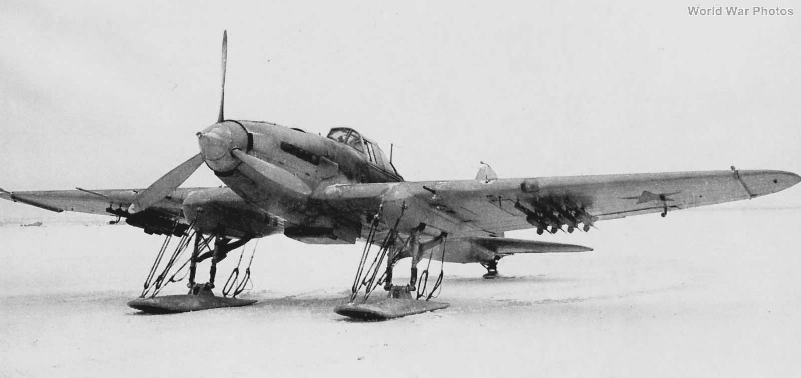 Wracając do bohatera tego artykułu, Ił-2 był maszyną, która w każdym normalnym kraju byłaby tylko ciekawostką, raczej nigdy niewdrożoną do produkcji. W ZSRR postąpiono inaczej, ale co trzeba przyznać, okoliczności powstania tego samolotu były zgoła inne. Po ataku III Rzeszy, które notabene uprzedziło atak ZSRS o jakieś dwa tygodnie, wszystko się zmieniło i dostosowano istniejące samoloty do wymagań aktualnej sytuacji. Aż czasem dreszcz przebiega po plecach, ilu ludzi zginęło, walcząc na tej maszynie, wykonując zadania bojowe bez własnej eskorty oraz bez jakiejkolwiek taktyki. Powolny, mało zwrotny samolot, z kiepską widocznością, masowo padał łatwym łupem samolotów Luftwaffe lub artylerii przeciwlotniczej. Przez te mankamenty skuteczność bojowa tej konstrukcji była mocno dyskusyjna. Mały udźwig bomb, brak celownika bombowego czy niecelne i mało skuteczne rakiety dopełniają tego obrazu. Dopiero wprowadzenie w roku 1943 na uzbrojenie WWS, bomby przeciwpancernej małego wagomiaru z ładunkiem kumulacyjnym PTAB-2,5-1,5, która znacząco poprawiła skuteczność tej maszyny. Ił-2 przenosił aż 280 takich bomb w czterech wewnętrznych kasetach (72 w centropłacie oraz 68 pod skrzydłami). Dzięki takiemu uzbrojeniu formacja „Szturmowników” mogła pokryć bombami dość znaczny obszar pola walki i dzięki temu wyeliminować spore siły pancerne przeciwnika. Jednocześnie trzeba wspomnieć, że skuteczność bombardowania zwykłymi bombami czy strzelania z rakiet w wykonaniu tego samolotu była mocno iluzoryczna. Oczywiście sowieckiej propagandzie nie przeszkodziło to w rozdmuchaniu niezasłużonej sławy. Ił-2 wg ich doniesień miał być bronią, przed którą Niemcy uciekają z pola walki. Niestety dla ZSRR, tak nie było a prawda jest bardzo odległa od mitu Szturmownika, który niestety pokutuje po dziś dzień.