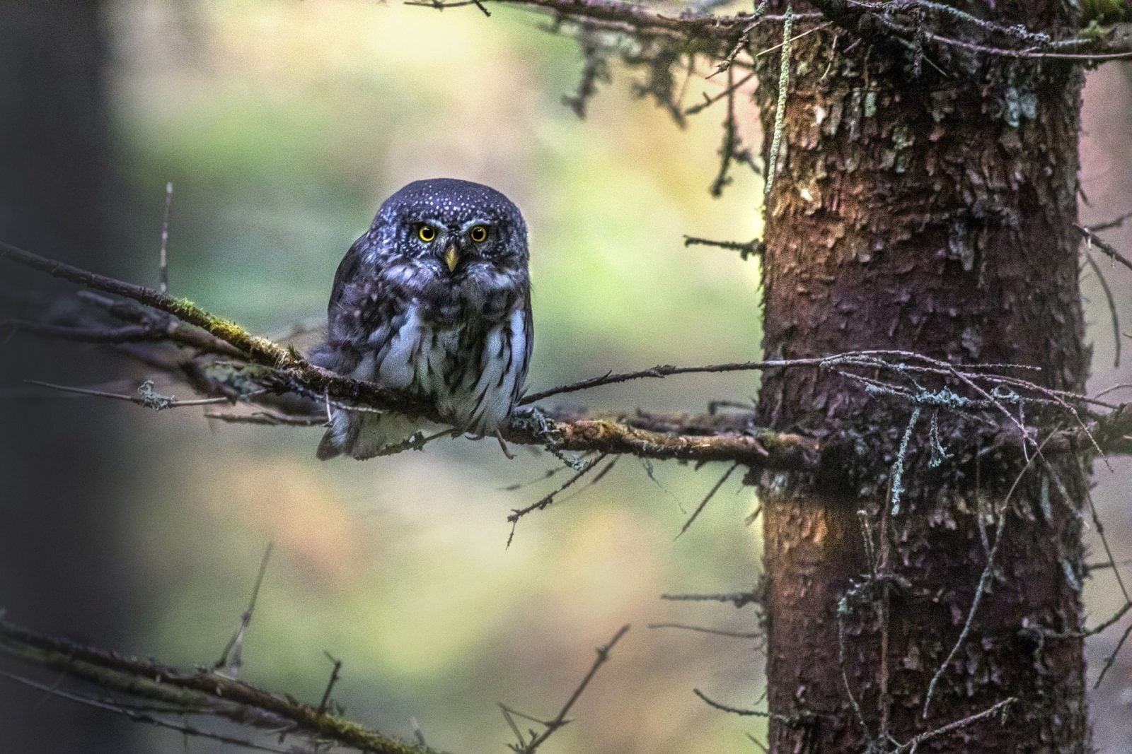 Sóweczka dwuplamista to gatunek sowy powszechnie występujący w lasach iglastych na zachodzie Ameryki Północnej. Ptak ten jest mniejszy niż drozd wędrowny, a przy masie ciała zaledwie 60 gramów jest prawdziwą maszyną do zabijania ptaków śpiewających. Te jednak potrafią się przed sóweczkami bronić, co postanowił zbadać zespół prof. Robinsona.