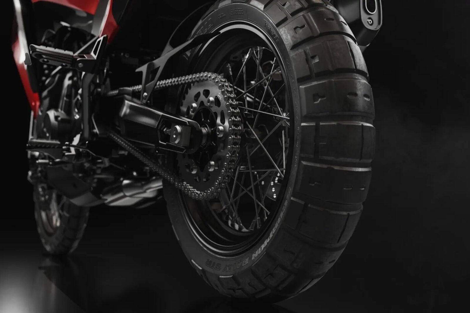 Motocykl zbudowano na stalowej ramie kratownicowej i wyposażono w aluminiowy wahacz i koła o średnicy 19 cali z przodu i 17 cali z tyłu. Do wyboru są opony Pirelli Scorpion Rally STR na szprychowych felgach w wersji czerwonej i białej, a edycja Black Ebony ma felgi aluminiowe.