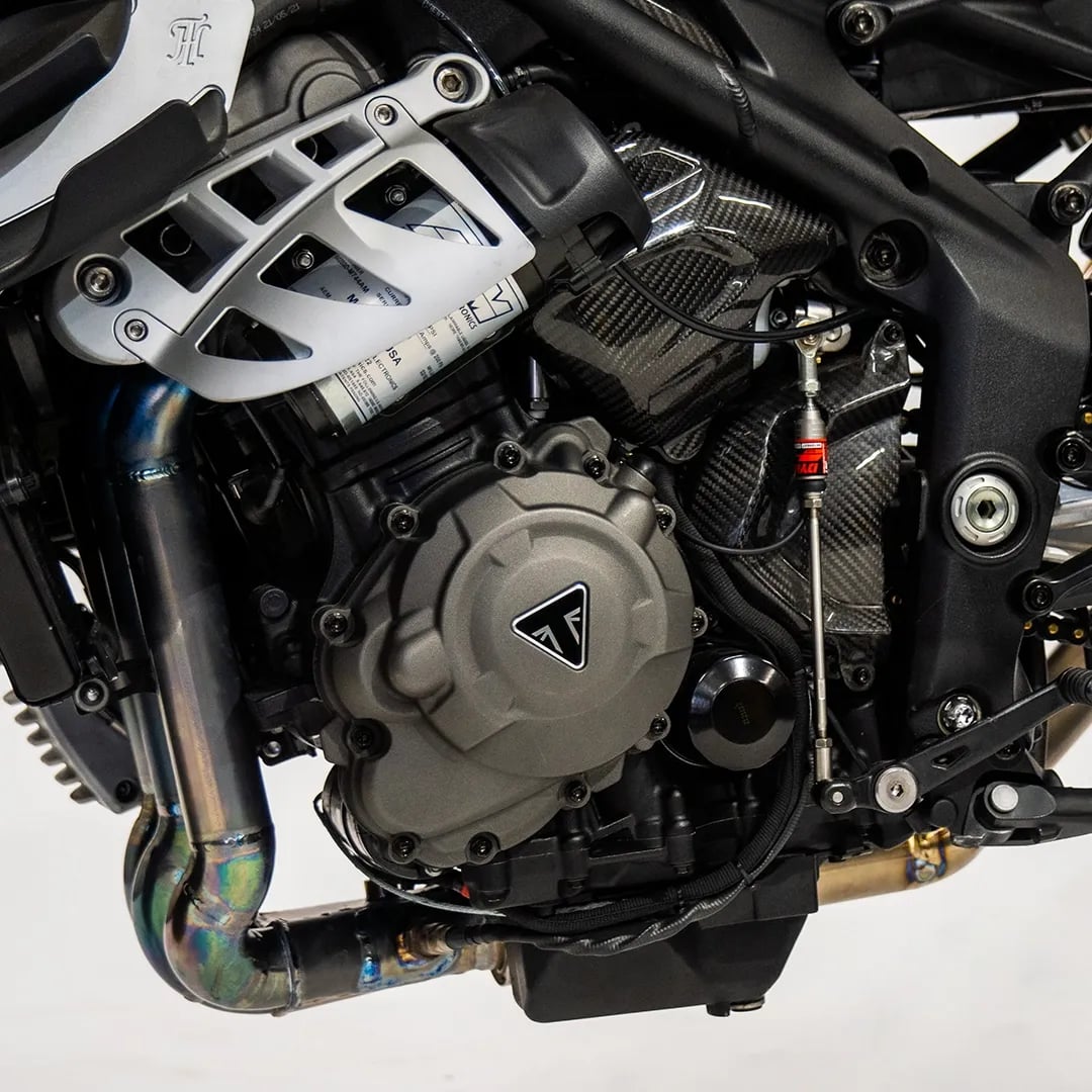 W swojej bazowej wersji Triumph Speed Triple RR to typowy café racer nowej generacji – napędzany 1,2-litrowym trzycylindrowym silnikiem o mocy około 180 KM. Łączy elegancki styl z brutalną siłą, będąc idealnym wyborem zarówno na szybką jazdę po torze, jak i na efektowne poruszanie się po mieście. Thornton Hundred postanowił jednak nie uznawać kompromisów i wycisnąć z tej maszyny wszystko, co się da – a nawet więcej.
