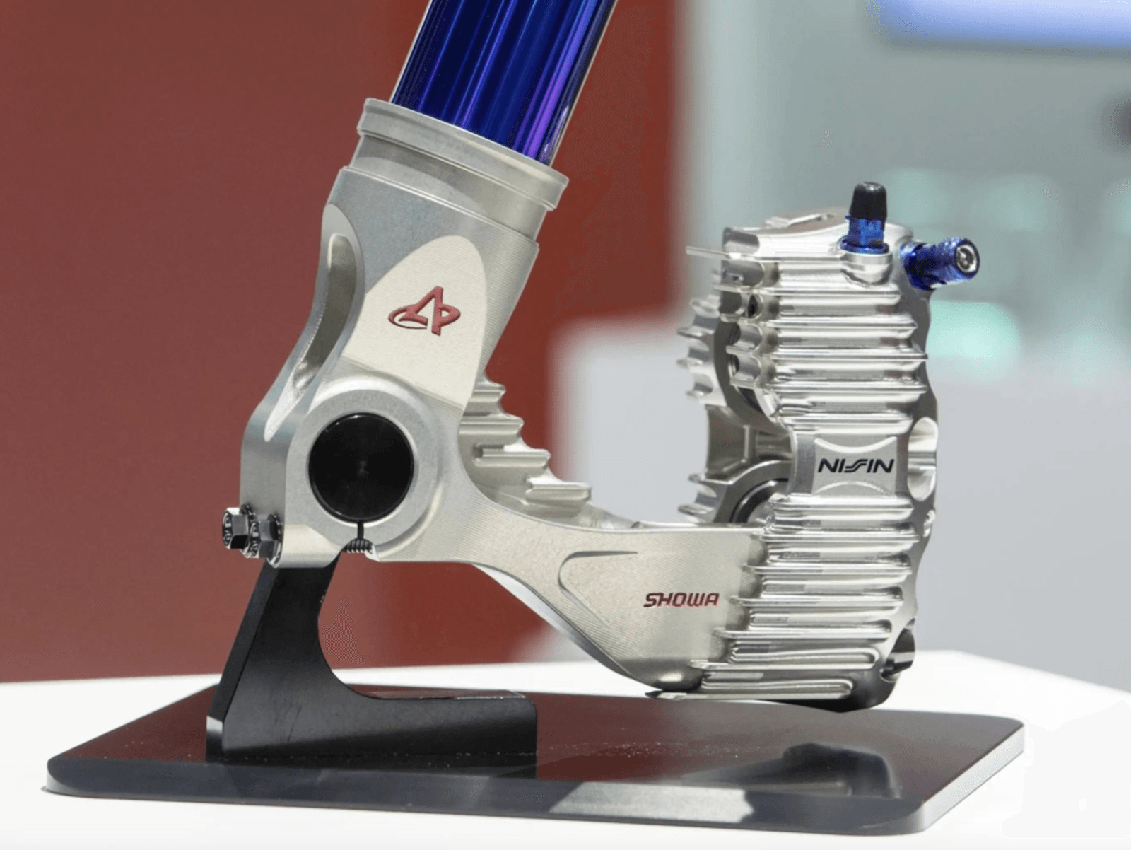 Pod auspicjami swojego właściciela, koncernu Hitachi Astemo, firmy Nissin i Showa opracowały unikalny projekt, który łączy hamulec i dolną część goleni widelca w jedną, precyzyjnie wyfrezowaną z jednego kawałka metalu konstrukcję. Ta nowatorska koncepcja zwiększa powierzchnię kontaktu pomiędzy zaciskiem a osią widelca o 30 proc., co ma istotny wpływ na sztywność i stabilność układu podczas intensywnej eksploatacji.
