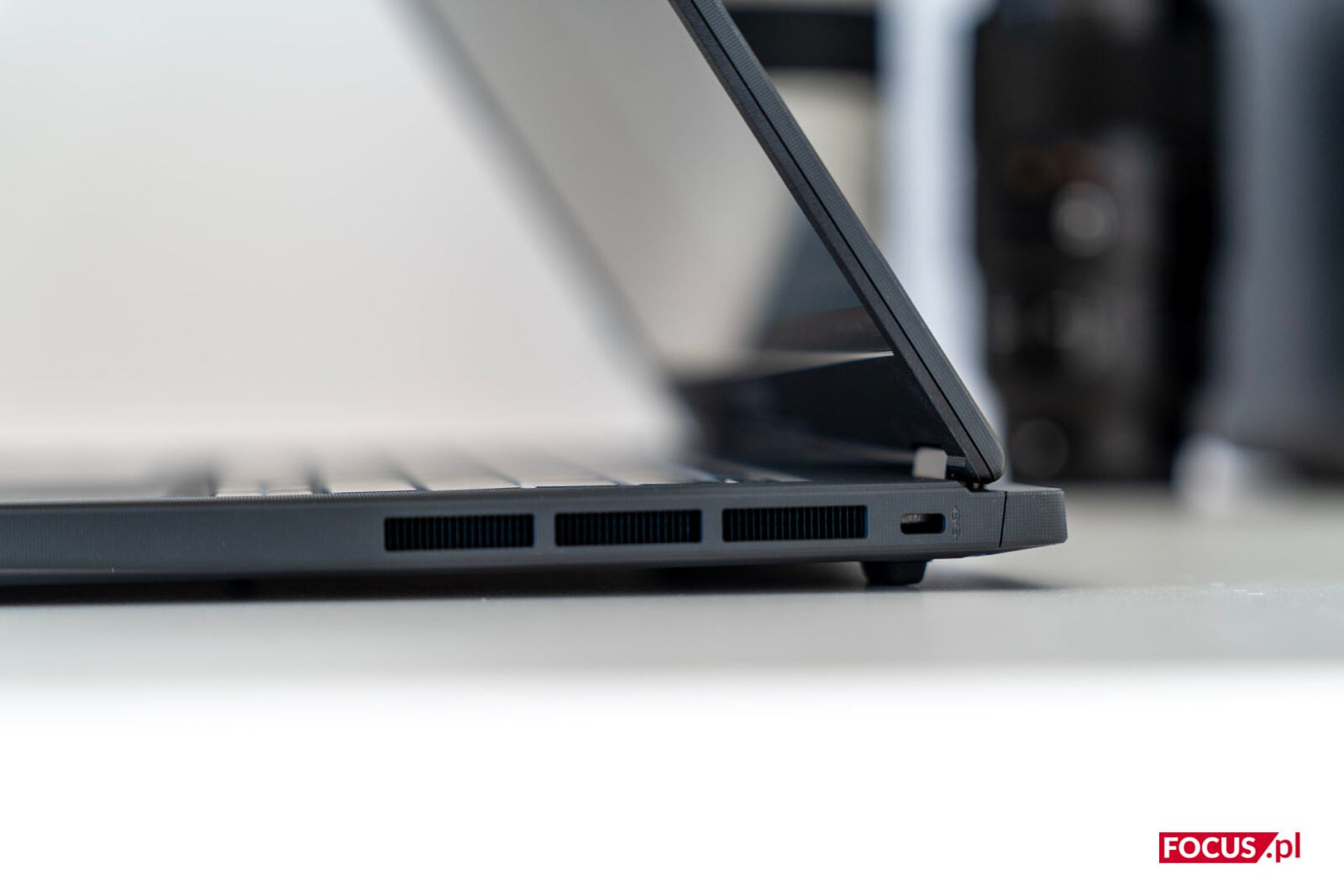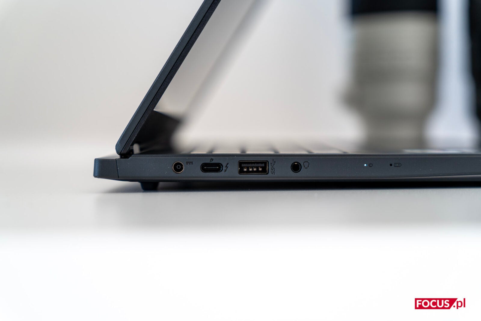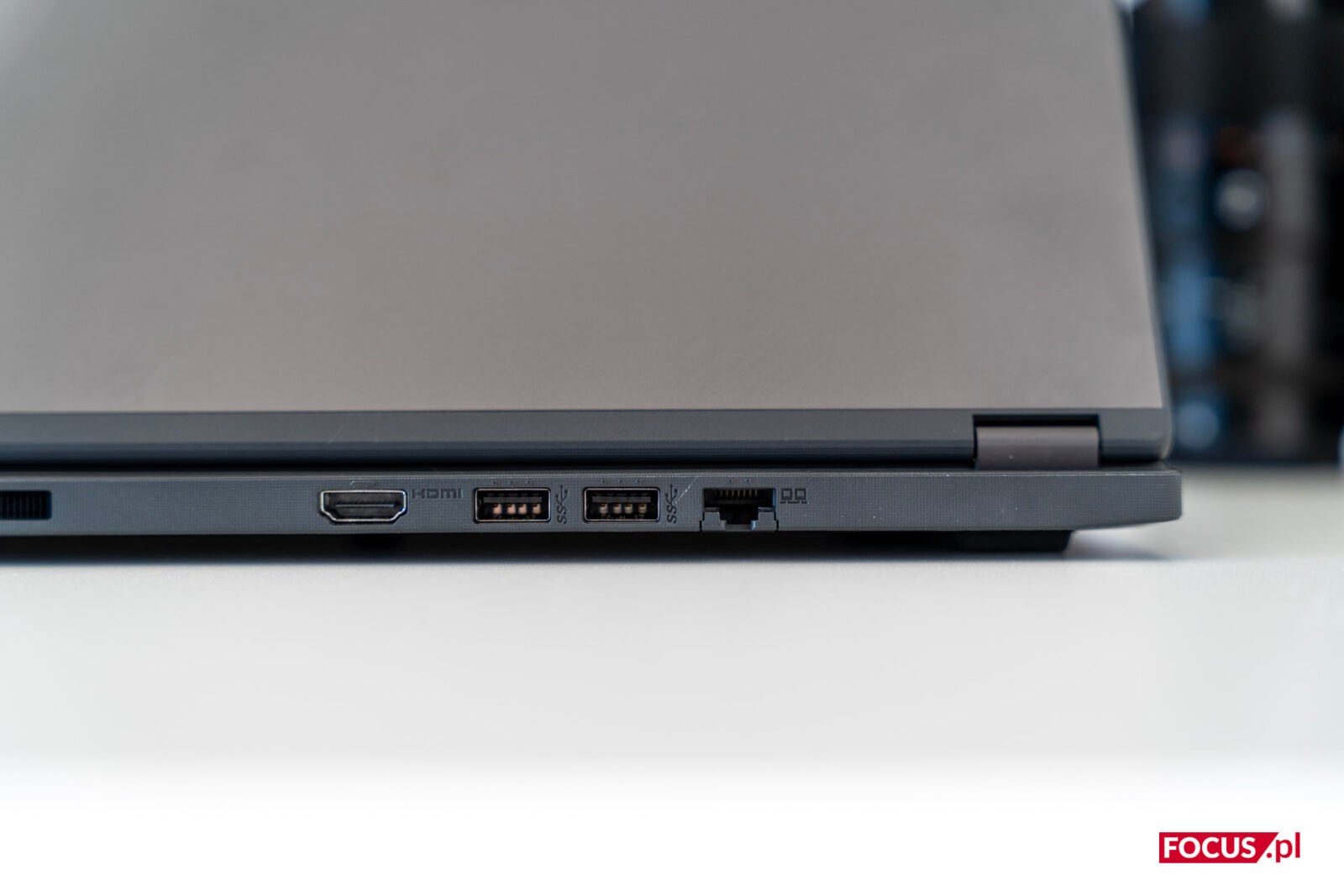Spójrzcie tylko na powyższe zdjęcia Commercial 14 H. Nie trzeba być zaawansowanym użytkownikiem, żeby dostrzec w tym produkcie MSI zarówno poręczny, jak i praktyczny sprzęt sprowadzony do ciemnoszarej bryły o wymiarach 313 × 236 × 18 mm i wadze 1,6 kilograma. Oparty o 180-stopniowy zawias 14-calowy ekran z matrycą IPS o rozdzielczości 1920 × 1200 to tylko jeden z ważnych elementów tej biznesowej układanki, bo równie ważne są też porty rozplanowane na lewym boku i tyle, a jest to zestaw obejmujący trzy USB-A 3.2 Gen 1, jeden port USB-C Thunderbolt 4 z obsługą trybu DisplayPort oraz Power Delivery 3.0, a do tego HDMI 2.1, gigabitowy port Ethernet, port combo-jack 3,5 mm na słuchawki oraz mikrofon, a do tego slot na kartę pamięci.