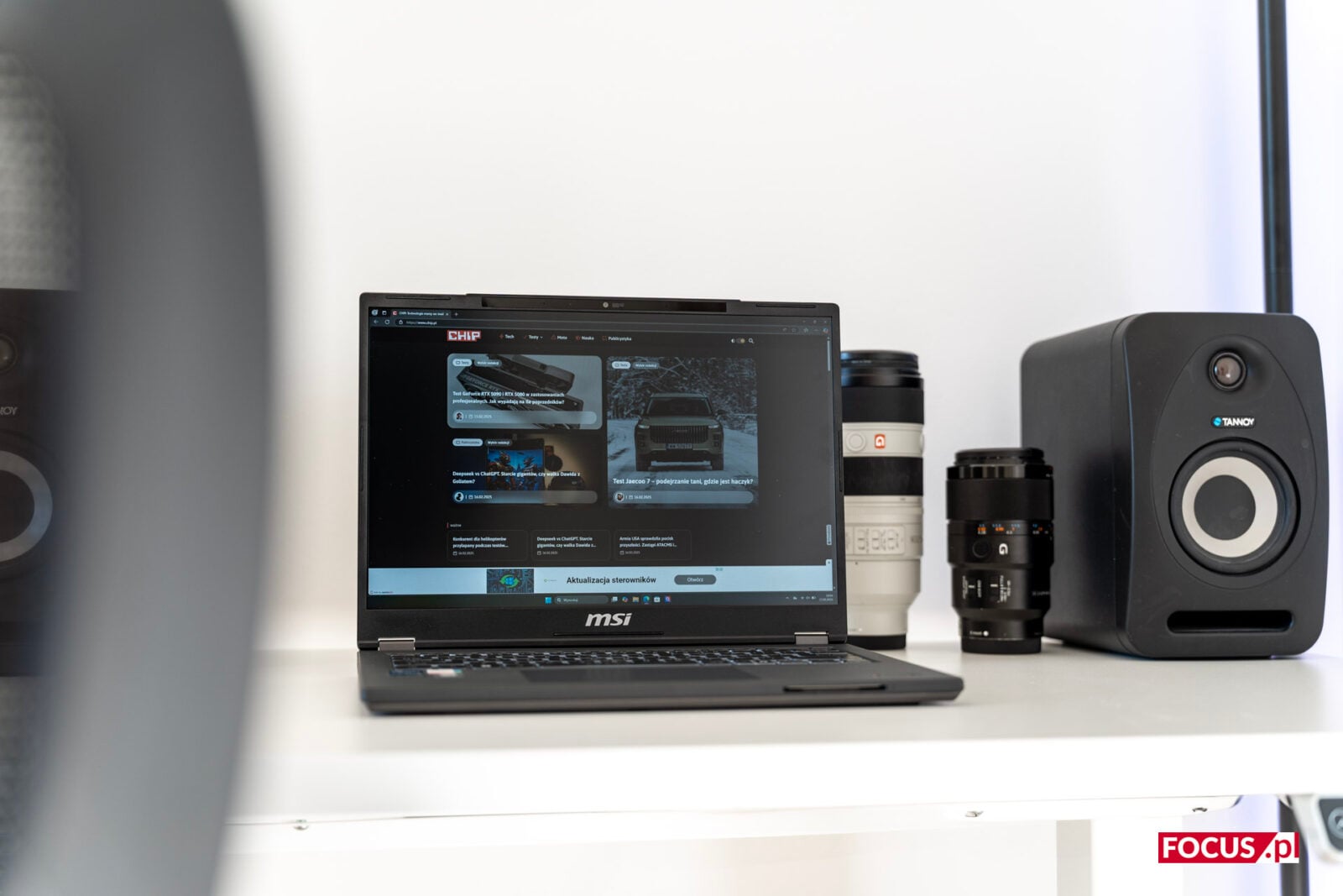 System chłodzenia został zaprojektowany tak, aby gorące powietrze było wydmuchiwane z prawej strony, co zapewnia komfort użytkowania. Całkowity brak przewodów z prawej strony zapewnia też wolność od ciągłego obijania się dłonią o kable, co tylko potwierdza, że MSI stworzyło ten sprzęt tak, aby jak najlepiej służył użytkownikowi w codziennych wyzwaniach. Potwierdza to również podświetlana na biało klawiatura, dwa 2-watowe głośniki wysokiej jakości, wbudowana kamera Full HD z funkcją podczerwieni oraz trzy mikrofony, mające radzić sobie z wygłuszaniem hałasu podczas rozmowy.