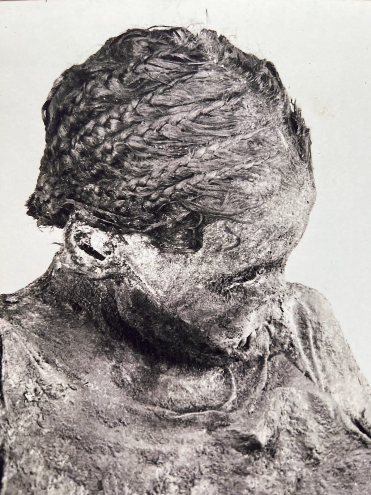 W 1908 roku na cmentarzu El Bagawat w egipskiej oazie Kharga odkryto zmumifikowane zwłoki młodej kobiety, która najpewniej żyła w Okresie Późnym starożytnego Egiptu (VII-IV w. p.n.e.). W chwili śmierci miała około 14-17 lat. Odnaleziono ją wraz ze szczątkami płodu pozbawionego głowy pomiędzy nogami. Ówcześni archeolodzy stwierdzili, że kobieta musiała umrzeć podczas porodu lub w wyniku późniejszych powikłań.