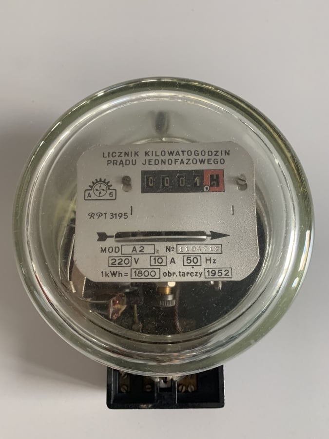 - Licznik energii elektrycznej prądu jednofazowego A2 – producent: PAFAL; rok produkcji 1952