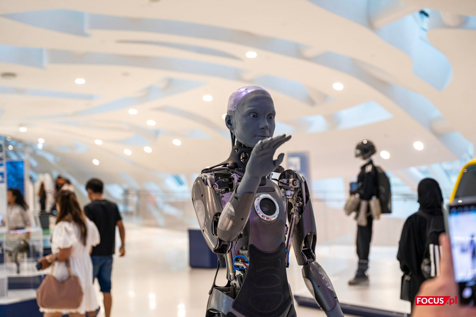 Plus za to należy się za przygotowanie wirtualnej asystentki, która udając AI oprowadza nas po pierwszej części wycieczki. Została stworzona tak, że każdy zwiedzający ma wrażenie, że przemawiająca do niego wirtualna postać widoczna na ekranie przemawia właśnie do niego i patrzy się dokładnie w jego kierunku.