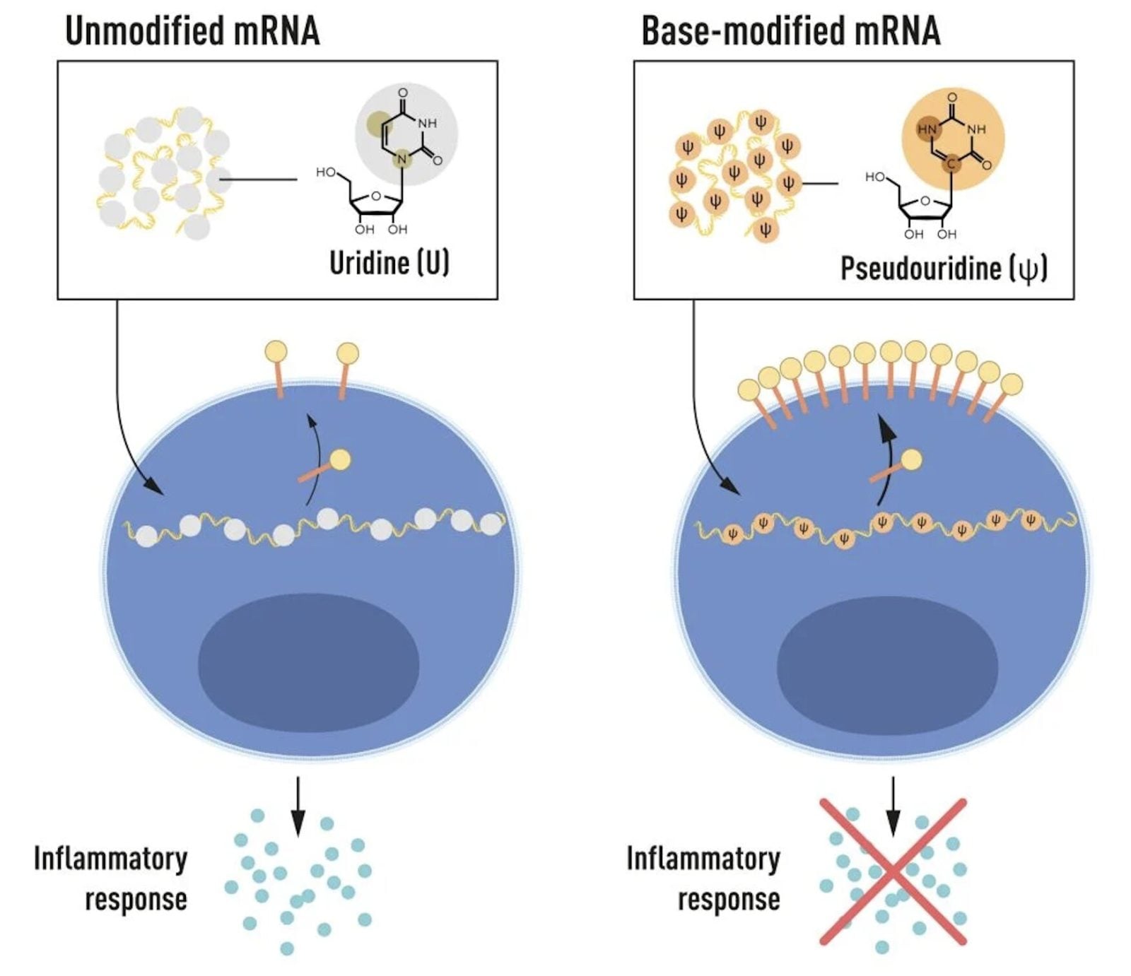 Przez dekady szczepionki mRNA uważano za niewykonalne, ponieważ wstrzyknięcie mRNA do tej pory wywoływało natychmiastową degradację mRNA. Karikó i Weissman wykazali ok. 20 lat temu, że zamiana jednej cząsteczki mRNA – urydyny – na podobną – pseudourydynę – omija wrodzoną obronę immunologiczną komórek. To drobna, ale niezwykle istotna zmiana.
