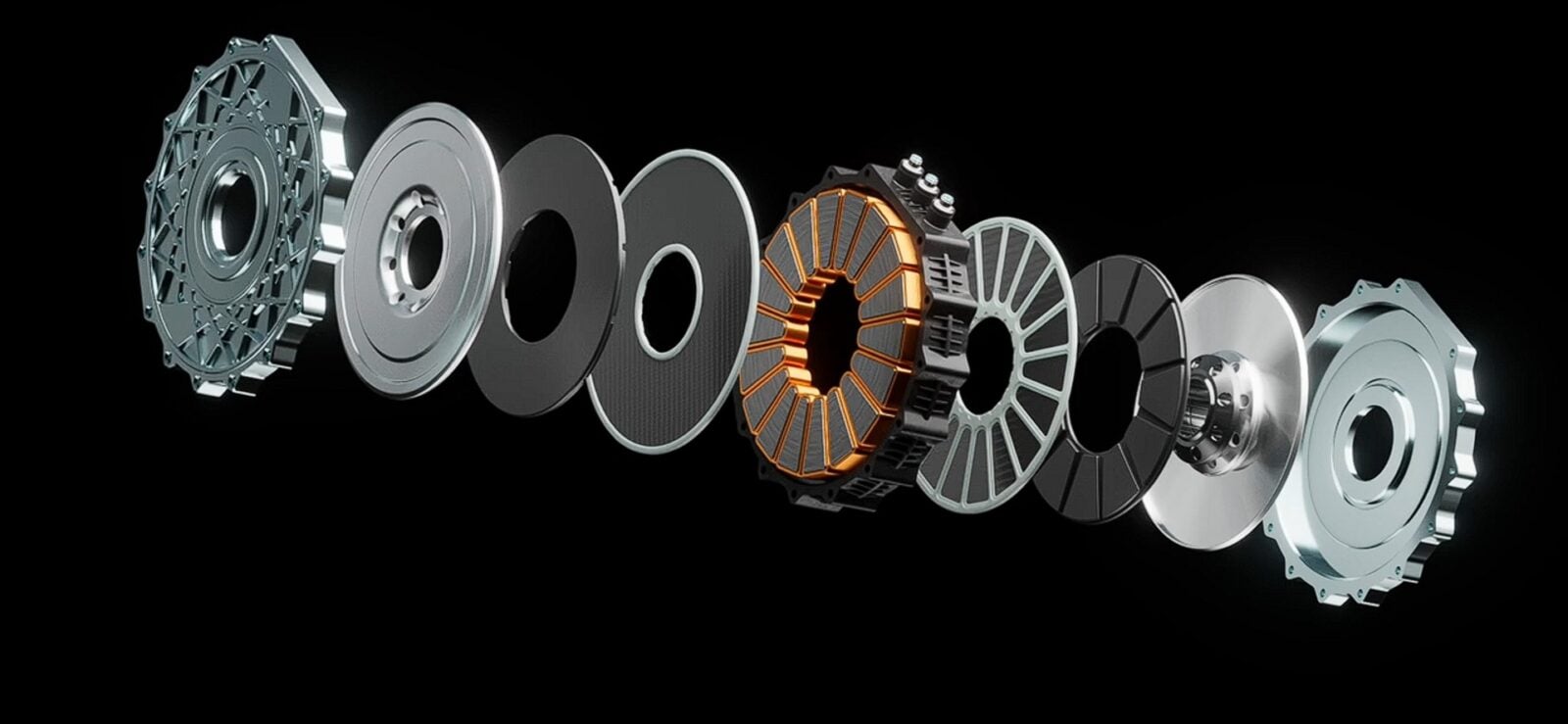 Nowy silnik Yasa waży zaledwie 12,7 kilograma, a jego średnica odpowiada wielkości standardowego talerza obiadowego. Kluczową cechą nowej jednostki jest zresztą właśnie jej konstrukcja tarczowa, która zasadniczo różni się od tradycyjnych rozwiązań. Tego typu silnik osiowy nie wygrywa z klasycznym samą swoją geometrią, tylko tym, jak wykorzystuje pole magnetyczne. W maszynie osiowej strumień zamyka się wzdłuż osi wirnika, dzięki czemu uzwojenia można przesunąć dalej od środka. Przekłada się to na dłuższe ramię działania siły elektromagnetycznej, a więc więcej momentu przy tej samej ilości miedzi i stali. Yasa stosuje dodatkowo stojan złożony z lekkich segmentów bez ciężkiego jarzma. Uzwojenia chłodzi się bezpośrednio, co podnosi moc oddawaną w sposób ciągły, a nie tylko w krótkim zrywie.