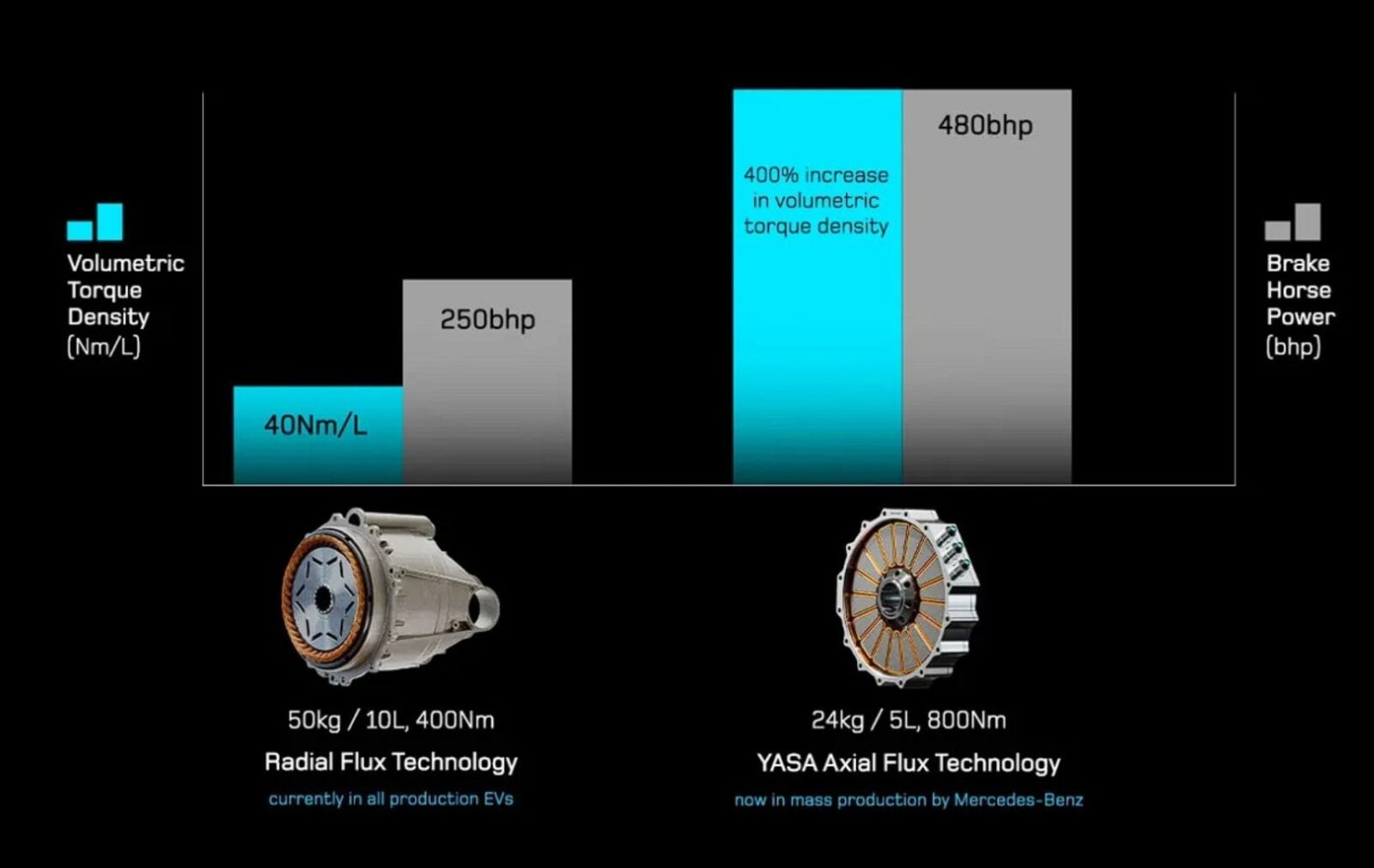 Przechodząc z kolei do najważniejszego, nowy silnik od Yasa generuje imponujące 1020 koni mechanicznych, co daje ponad 80 koni mechanicznych z każdego kilograma masy. Żaden obecnie dostępny silnik spalinowy ani elektryczny nie może pochwalić się podobnym stosunkiem mocy do wagi, bo np. taki Ferrari 12Cilindri gwarantuje jedynie 3,2 KM/kg. W codziennej eksploatacji silnik może oddawać w sposób ciągły niższą moc, bo w zakresie od 476 do 544 KM, co jednak wciąż stanowi wartości porównywalne z najwydajniejszymi jednostkami spalinowymi. Pełna moc dostępna jest jedynie przez krótkie okresy, bo np. podczas dynamicznego przyspieszania i nie wszystko jest aż tak kolorowe.