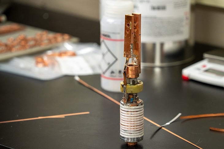 Magnes ma zaledwie ok. 1,5 cala średnicy i ok. 2 cale wysokości, ale składa się z ponad 200 m nadprzewodzącego przewodu, skręconego w ponad 2700 zwojów. Dzięki pracom Jeseoka Banga udało się zredukować oporność w połączeniach miedzianych (tam, gdzie materiał przestaje być nadprzewodnikiem) aż pięciokrotnie względem wcześniejszych wersji.