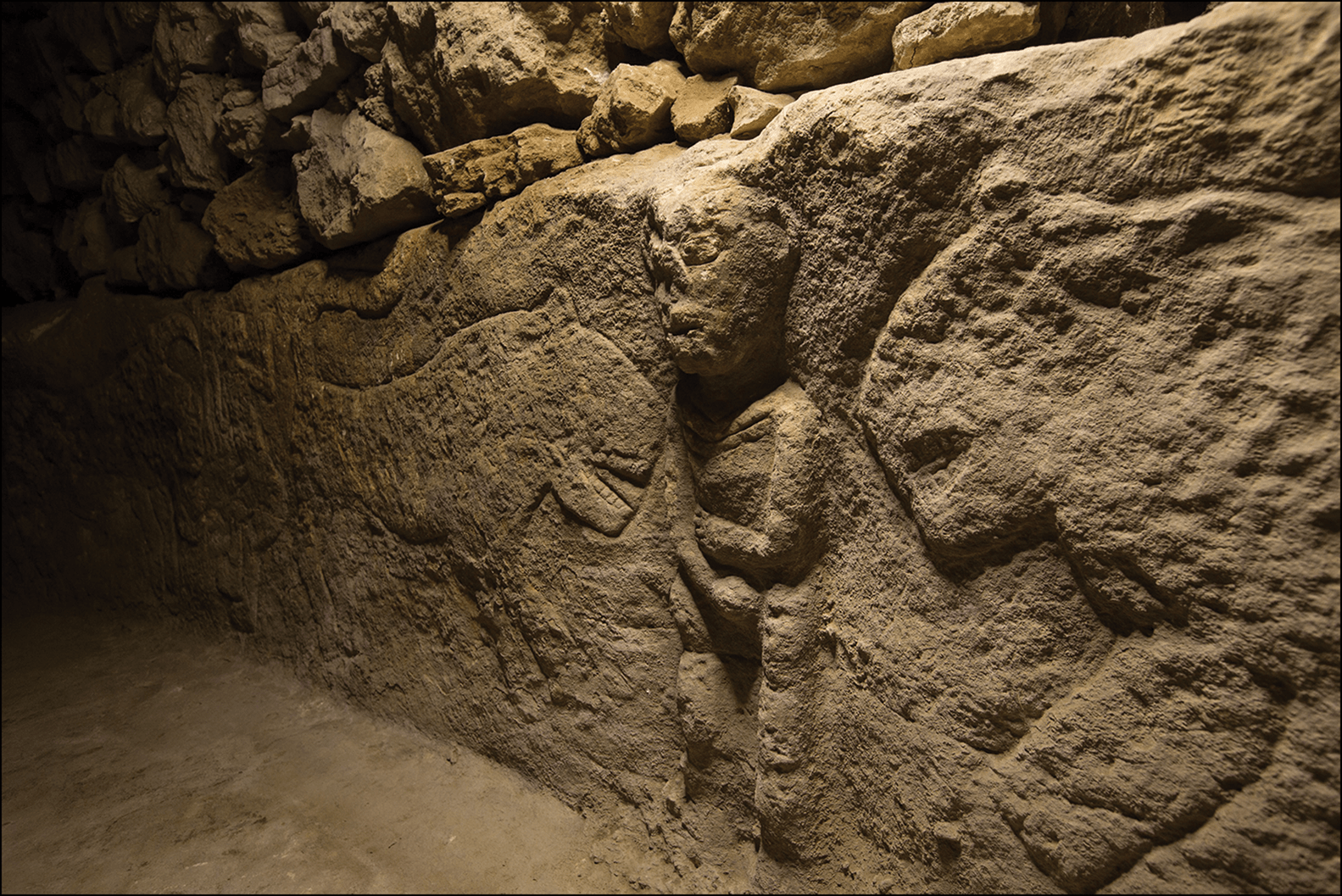 Znalezisko liczy aż 11 tys. lat (9000 r. p.n.e.) i pochodzi z okresu rewolucji neolitycznej. Na dwóch osobnych kamieniach wyryte zostały dwie płaskorzeźby. Pierwsza pokazuje kucającego mężczyznę, który z wężem w ręce zwraca się twarzą do byka z ogromnym rogiem. Jest to typowa scena walki człowieka ze zwierzęciem.