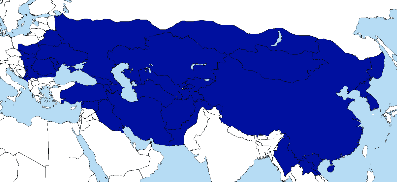 Niewielkie mniejsza od imperium brytyjskiego był Wielki Ułus Mongołów, który w 1270 roku osiągnął swój największy zasięg terytorialny – 33 miliony kilometrów kwadratowych powierzchni. Imperium mongolskie obejmowało swym zasięgiem spory obszar Azji: całe Chiny, Mongolię, północną Tajlandię, państwa Azji Środkowej, południowy pas Rosji, Iran, Irak, Turcję i państwa Kaukazu.