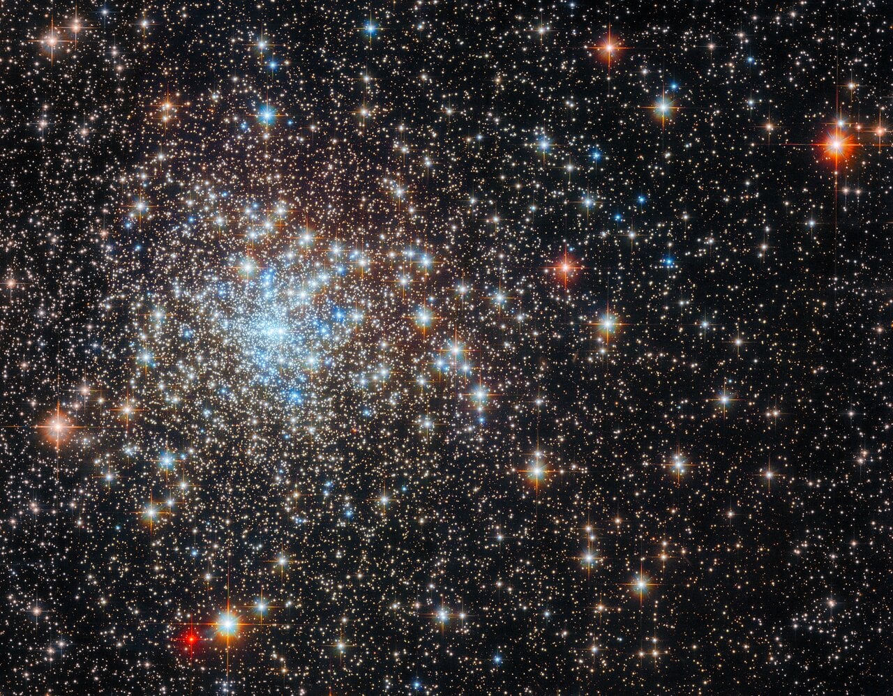 Co do zasady we wnętrzu gromad kulistych w toku ich ewolucji dochodzi do segregacji gwiazd. Lżejsze gwiazdy przelatując w pobliżu masywniejszych nabierają więcej prędkości, przez co stopniowo wyrzucane są w zewnętrzne rejony gromady. Gwiazdy masywniejsze tym samym koncentrują się wokół jej centrum. Dzięki temu w starych gromadach kulistych widoczny jest wzrost zagęszczenia gwiazd wraz ze zbliżaniem się do ich centrum. Naukowcy podejrzewają jednak, że możliwe jest, iż w centrum niektórych gromad, w tym także NGC 6325 znajduje się po prostu masywna czarna dziura. Do poszukiwań takich właśnie czarnych dziur w centrach gromad kulistych, w tym także NGC 6325 wykorzystana została kamera Wide Field Camera 3 (WFC3) zainstalowana na pokładzie Kosmicznego Teleskopu Hubble’a. W trakcie tychże poszukiwań powstało powyższe zdjęcie niezwykle urokliwej gromady. Bogate w błękitne gwiazdy centrum gromady widoczne jest w lewej górnej części kadru. Wokół niego rozciąga się nieco rzadsza część gromady pełna gwiazd pomarańczowych i czerwonych.