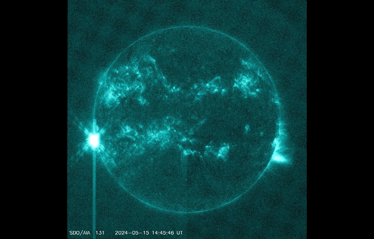 Wraz z obrotem Słońca wokół własnej osi, zza wschodniej krawędzi tarczy słonecznej wyłoniła się grupa plam słonecznych AR3685, która już 15 maja, znajdując się jeszcze za krawędzią Słońca przywitała się z nami rozbłyskiem klasy X2.9. Zważając jednak na fakt, że ta grupa plam słonecznych będzie się znajdowała na tej części Słońca, która jest widoczna z powierzchni Ziemi aż do 30 maja, możemy się spodziewać z jej strony całej serii rozbłysków w najbliższych dniach.