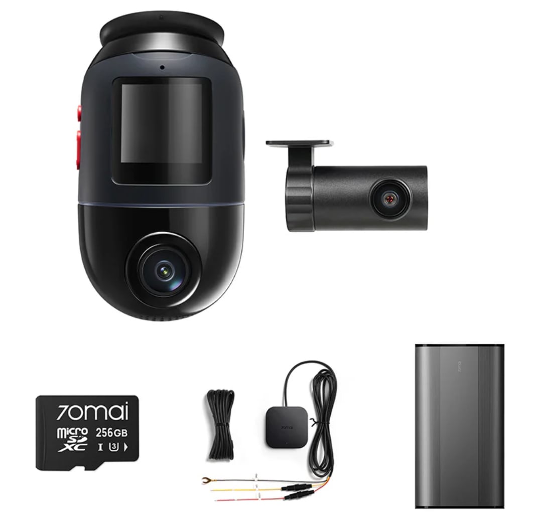 70mai promuje swój nowy rejestrator jako jedyny produkt tego typu na rynku. I rzeczywiście może to być pierwszy zestaw kamer do auta, który zapewni widok dookoła. Kamera tylna ma klasyczną konstrukcję, ale przednia dostała uchwyt z mechanizmem obracającym kamerę o 340°, zależnie od potrzeb. Razem dają widok na całe otoczenie.