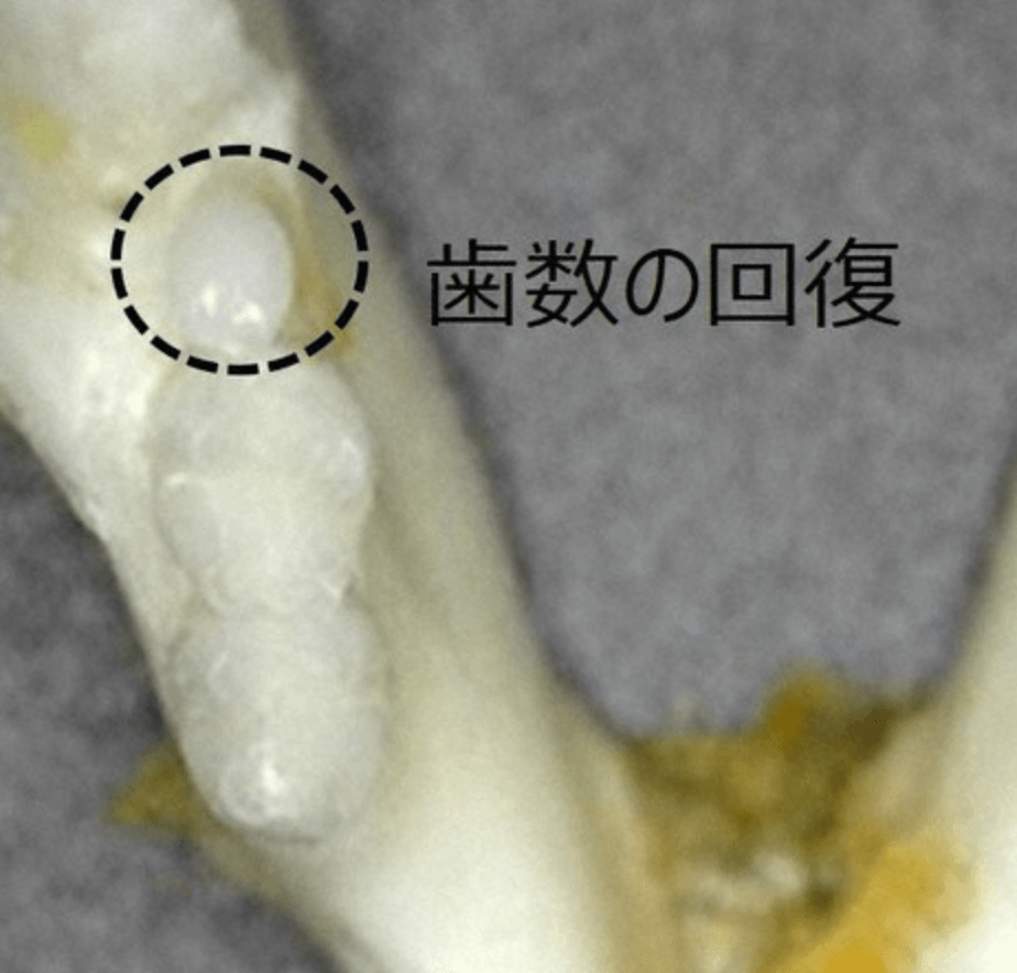 Japońscy naukowcy odkryli, że myszy pozbawione pewnego genu miały zwiększoną liczbę zębów. Stwierdzono, że białko o nazwie USAG-1, syntetyzowane przez ten gen, ogranicza wzrost zębów. To oznaczało, że zablokowanie działania tego białka mogłoby pozwolić na wzrost większej liczby zębów.