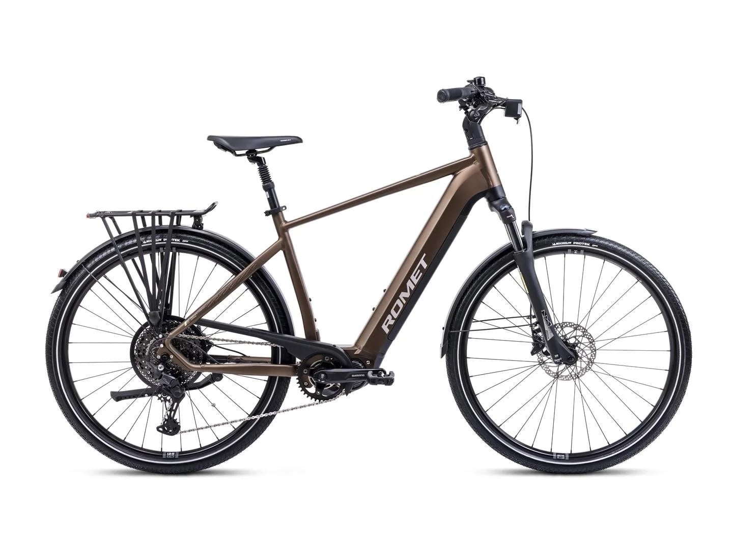 Rower porusza się na 29-calowych obręczach WTB ST I25mm, obutych w opony Michelin Protek o szerokości 1,85 cala. Postawiono tu na trwałość i odporność na przebicia, a odblaskowe boki opon poprawiają widoczność po zmroku. Standardowe wyposażenie obejmuje także zintegrowane oświetlenie, pełne błotniki, osłonę łańcucha, amortyzowane siodełko i solidny bagażnik – wszystko, czego potrzebuje turysta rowerowy.