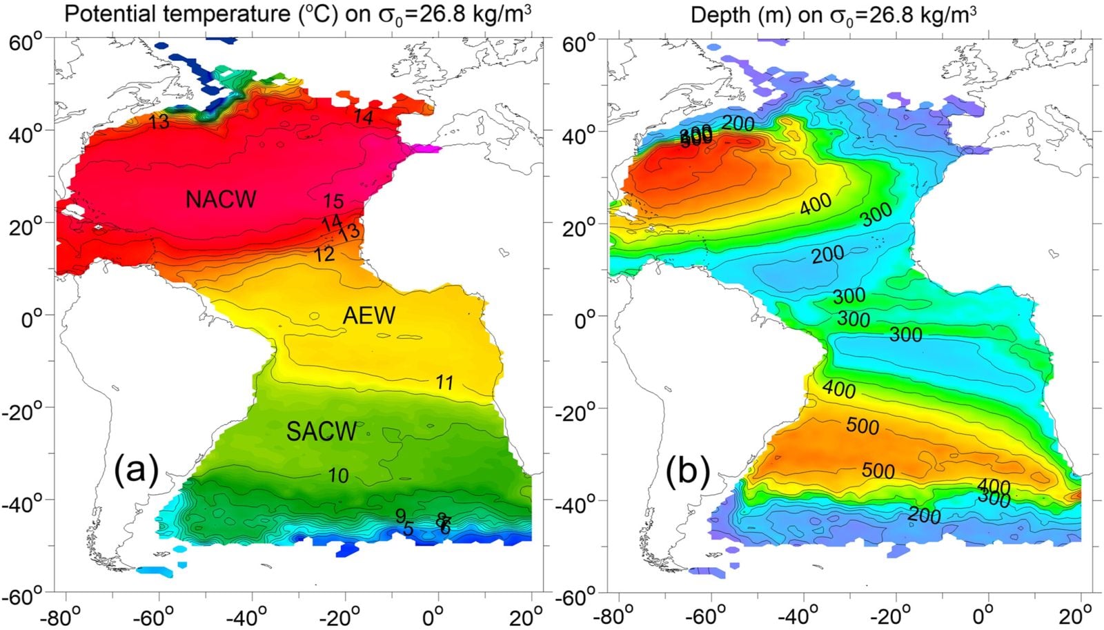 Termoklina AEW na profilach okazała się mieć w przedziale głębokości 150-500 metrów własną, dystynktywną zależność temperatury od zasolenia. Ponadto obliczono, w jakich proporcjach dochodzi wokół równika do mieszania się NACW i SACW. Jak się możemy domyśleć po przeanalizowaniu położenia nowo odkrytych mas, zdecydowany udział mają wody z południowego sektora – jest ich 3,5 razy więcej niż tych z północy.