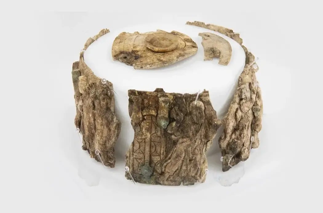 Relikwiarz znaleziony w obrębie ołtarza na terenie dawnego kościoła ma około 1500 lat. Wykonano go z kości słoniowej