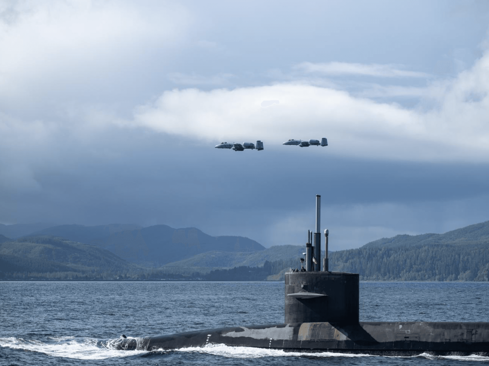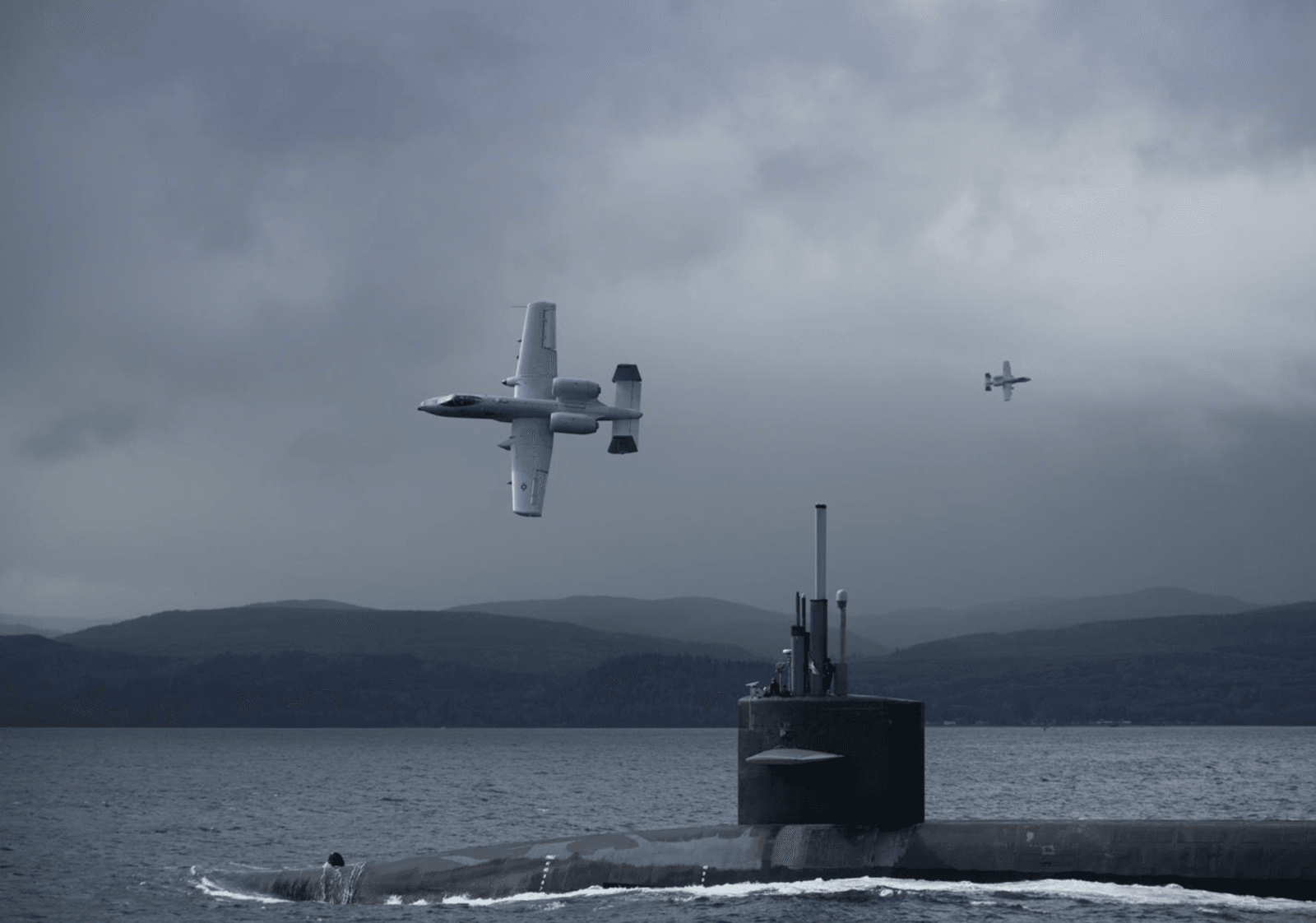 USS Nebraska przepływał przez cieśninę Juan de Fuca – drogę wodną łączącą Puget Sound w rejonie Seattle z Oceanem Spokojnym. Nagle na niebie pojawiły się cztery samoloty A-10 Thunderbolt II “Warthog”, aby pomóc “upewnić się, że tranzyt przebiega bez zakłóceń”.