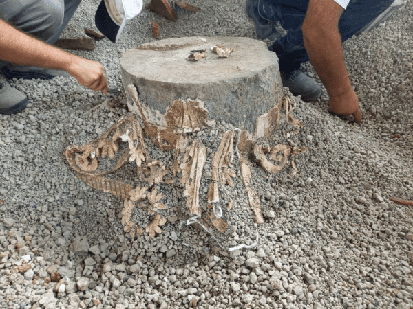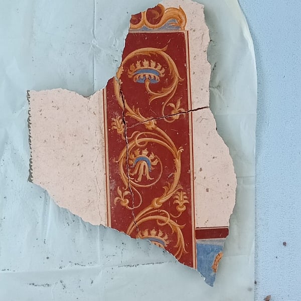 W toku wykopalisk badaczom udało się zidentyfikować między innymi malowidła ukazujące postacie w pozycjach siedzących oraz duże fragmenty zawalonych ścian. Portyk został pokryty pyłem i skałami wyrzuconymi w trakcie erupcji. Paradoksalnie, było to dobre z punktu widzenia archeologii, ponieważ pochodzący z Wezuwiusza materiał utworzył zabezpieczenie, które zapewniło tym dziełom ochronę przez długie lata.