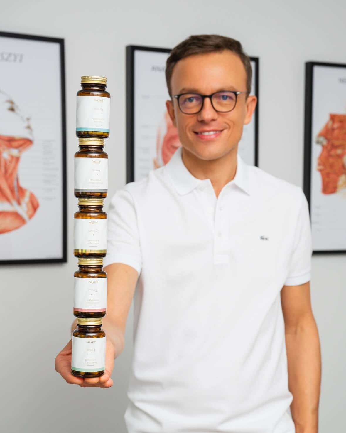 „Pomysł na Kagami Lab Solutions mialem w głowie od zawsze, ale wprowadzenie na rynek suplementów diety o tak bogatym składzie i tak głęboko przebadanych i zapewniających tak dobrą wchłanialność zajmuje bardzo dużo czasu. W końcu teraz się udało! Idea jest prosta – wszyscy wiemy, że żyjemy w świecie, w którym jesteśmy nieustająco narażeni na nadmiar stresu, pośpiech, …siedzący tryb życia… to wpływa na gospodarkę mineralną i witaminową. Dodatkowo gleby są dziś w znacznym stopniu wyjałowione i dzisiejsza marchewka ma już tylko 30-40 procent tego, co w niej było kilkadziesiąt lat temu. Musimy wspomagać się suplementacją. Niestety, nawet zrównoważona i przemyślana dieta dziś już nie wystarczy. A zestaw Kagami Lab Solutions wystarcza na pół roku przemyślanej i odpowiednio skomponowanej suplementacji. Dzięki temu proces odżywienia naszego ciała jest dłuższy, ale wielopoziomowy, a efekty są trwalsze i bardziej widoczne. Spożywanie tylko dwóch kapsułek dziennie przez pięć dni w tygodniu dostarcza 57 aktywnych składników, które wspierają poprawę zdrowia oraz wyglądu skóry”, wspomina Witold Pyrkosz.
