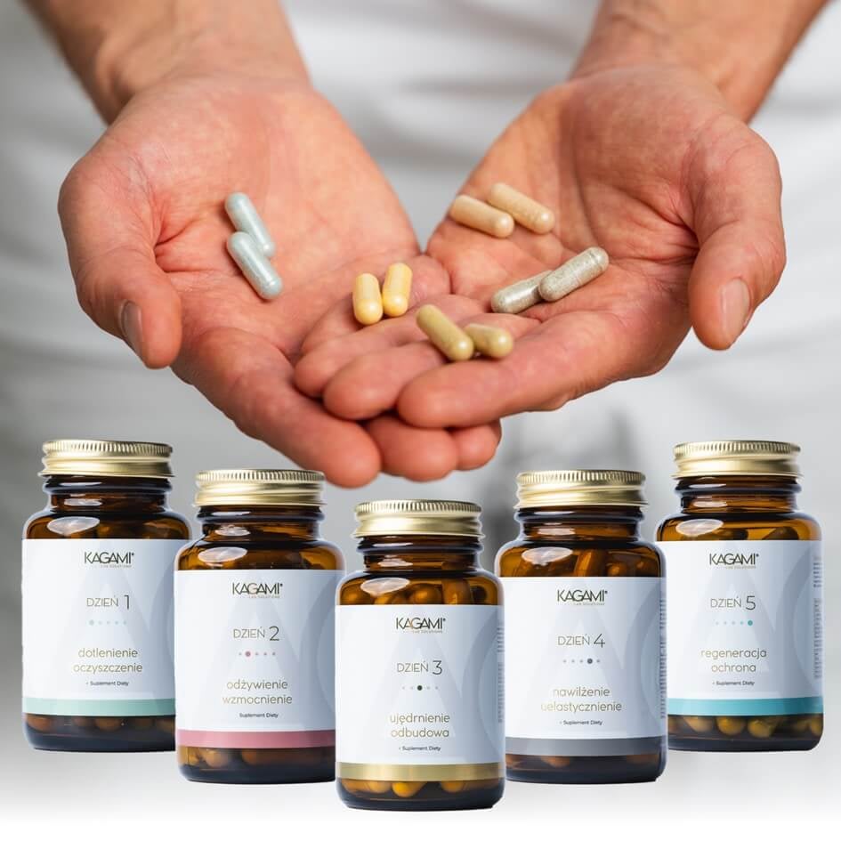 Kagami znaczy po japońsku „lustro”. Kobido Up też ma źródła inspiracji właśnie tam. To jedyny zestaw na rynku łączący witaminy, minerały, probiotyki i adaptogeny, wzbogacony kolagenem i kwasem hialuronowym. Powstał jako odpowiedź na chaos panujący w temacie przyjmowania suplementów. Nie wiemy co kupować, by zapewnić organizmowi odpowiednie dawki potrzebnych składników. Mamy szuflady pełne różnych suplementów, które łykamy bez ładu i składu. Do tego dochodzi nasza niewiedza. Nie wiemy co z czym łączyć, a czego nie łączyć (na przykład z powodu ograniczenia wchłanialności). Nie wiemy też jak przyjmować konkretne składniki i w jakich dawkach.