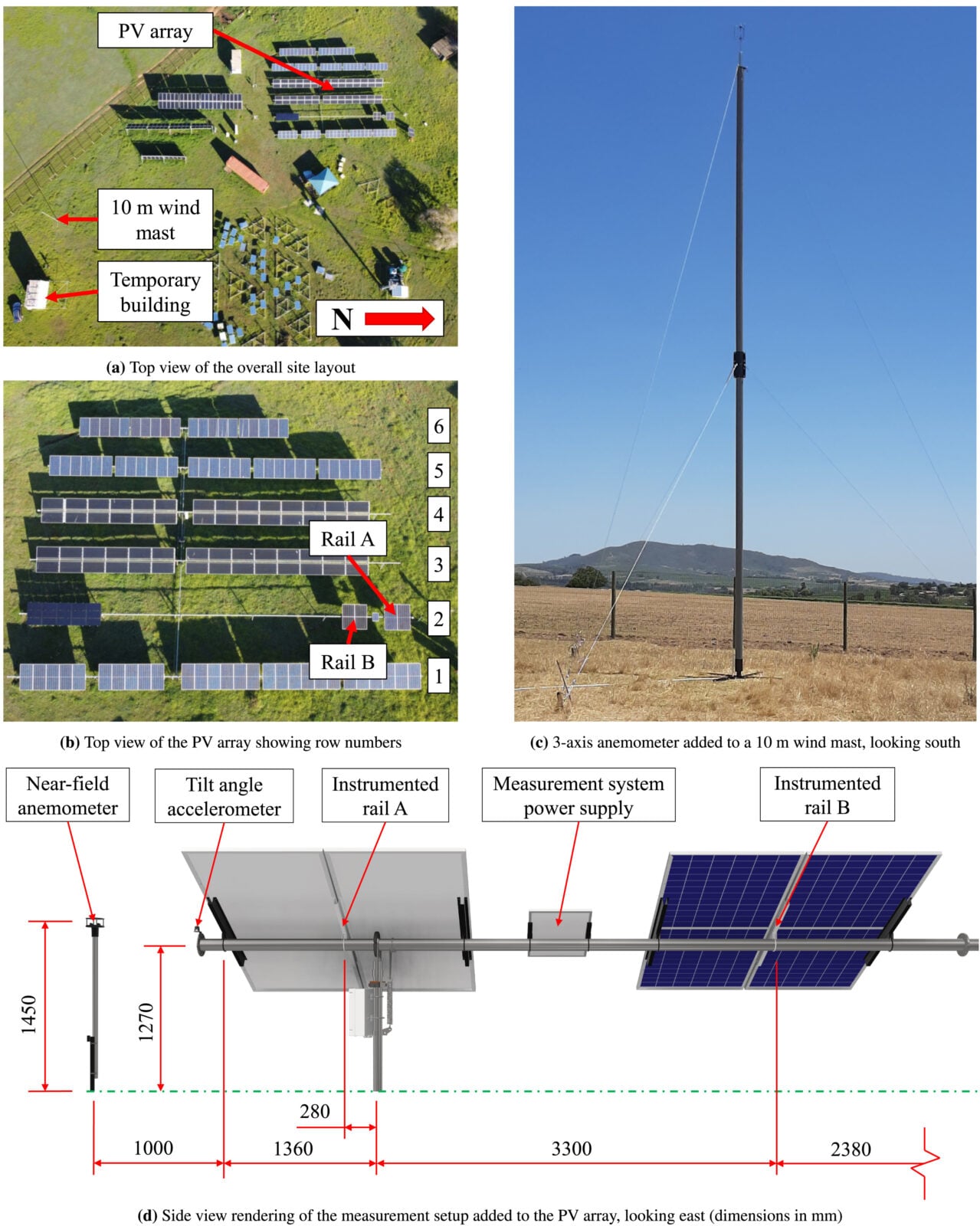 Wobec takiej sytuacji naukowcy obserwowali testową instalację fotowoltaiczną przez 109 dni, od grudnia 2022 roku do marca 2023 roku (czyli w sezonie letnim dla półkuli południowej). Cały obiekt składał się z sześciu rzędów paneli słonecznych o długości 32 metry i rozstawionych co 5 metrów. Badacze zbierali pomiary jednak tylko z jednego rzędu modułów, a finalnym celem było określenie wpływu obciążenia wiatrem na dwie szyny montażowe.