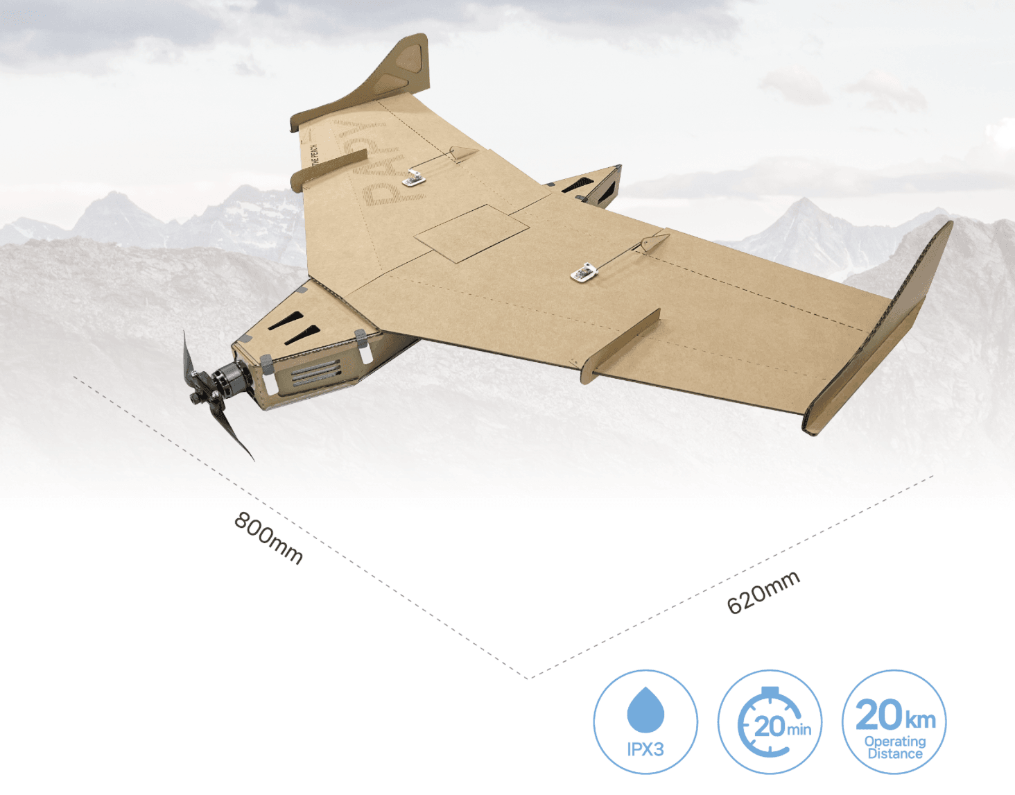Dzięki rozpiętości skrzydeł 800 mm i maksymalnej masie startowej 1 kg jest zoptymalizowany pod kątem szybkiego wdrożenia w terenie. Można wypuszczać go “z ręki”, bez ciężkiej infrastruktury, oferując elastyczność w warunkach bojowych. Dron może latać z maksymalną prędkością 100 km/h i ma zasięg operacyjny wynoszący 50 km. Może pozostawać w powietrzu przez 20 minut, co jest “wystarczające” w większości misji rozpoznawczych.