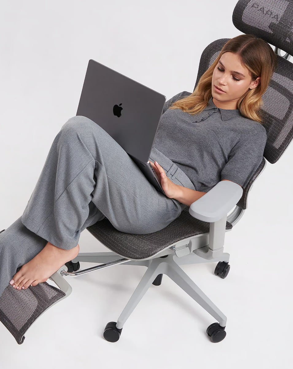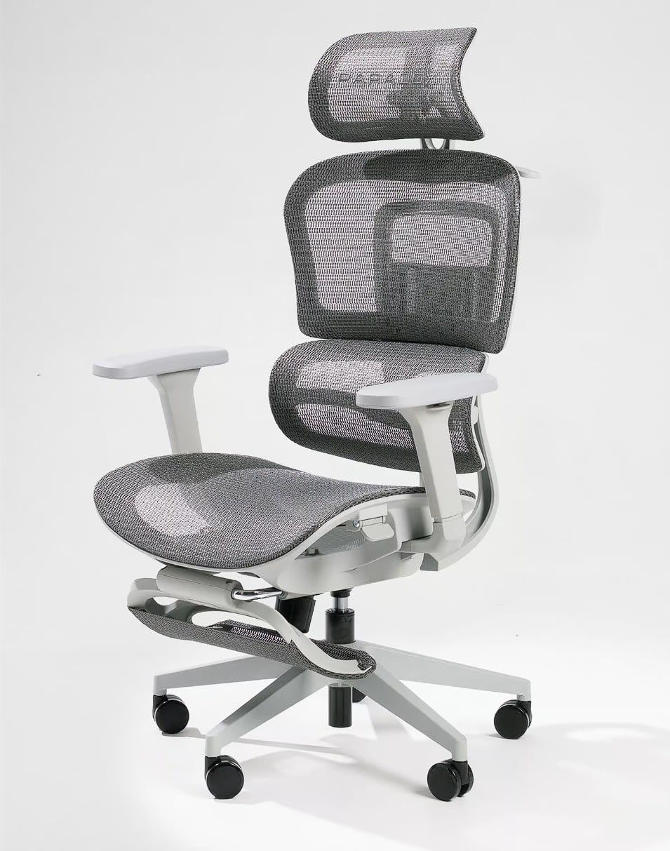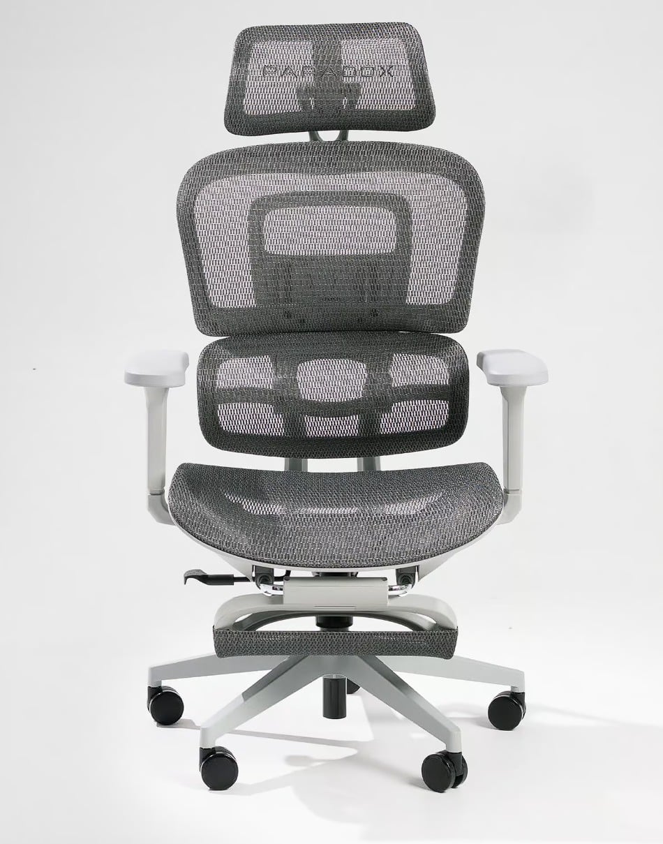 Paradox Ergo One to siatkowy klasyk w wydaniu, które nastawia się na bardzo długie sesje w idealnym komforcie niezależnie od tego, czy macie w pomieszczeniu klimatyzację. Oddychająca konstrukcja AirFlow rozprasza ciepło i wilgoć, więc nawet latem nie ma efektu nagrzanego siedziska. W praktyce najważniejsza jest jednak rozległa skala dopasowania, które obejmuje wysuw siedziska, regulowany zagłówek z korektą kąta, blokady pochylenia oraz podłokietniki 4D, co ułatwia ustawienie pozycji pod biurko i wzrost użytkownika. Tego typu fotel nie narzuca jednej postawy, a pozwala płynnie przechodzić od pracy w pełnym skupieniu do relaksu.