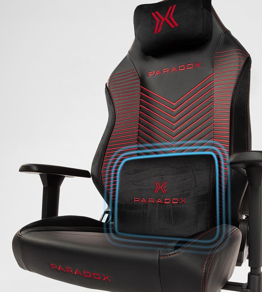 Paradox Ultimate Dark Lava jest już gamingową propozycją z bardzo wysokiej półki. Jest to fotel dedykowany dla osób, które chcą zamknąć temat wygody na stanowisku na długie lata. Wbudowany system LumbarPro pracuje w dwóch osiach, dzięki czemu dopasowuje podparcie do krzywizny pleców, zamiast udawać dobre wsparcie tylko jedną poduszką. Do tego dochodzą podłokietniki 4D z pewnym zatrzaskiem pozycji, mechanizm odchyłu z szerokim zakresem od 90 do 175 stopni i wykończenie, które nie prosi się regularnie o półroczną przerwę na reklamacje.