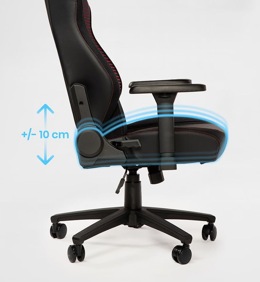 Paradox Commander Obsidian Blade to propozycja dla tych, którzy wolą klasyczny look gamingowy, ale oczekują porządnej bazy. Tapicerka z nowej generacji eco-skóry z welurowymi wstawkami nie tylko wygląda, lecz także dobrze znosi codzienną eksploatację. Fundamentem jest stabilna podstawa i podłokietniki 4D (regulacja w czterech wymiarach) z wyczuwalnymi krokami regulacji. W parze z mechaniką odchyłu i poduszkami memory ten model daje poczucie pełnej kontroli nad pozycją, kiedy trzeba skupić się przy biurku.