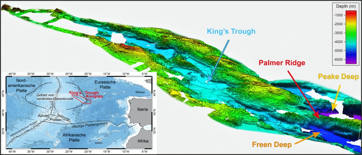 Jest to system rowów i głębokich basenów znany jako King’s Trough Complex. Do niedawna najprostsze wyjaśnienie jego powstania brzmiało “rozciąganie skorupy oceanicznej i pęknięcia” Teraz badacze składają to w dużo konkretniejszą układankę, w której kluczowe role grają chwilowa granica płyt i gorący impuls z płaszcza Ziemi.
