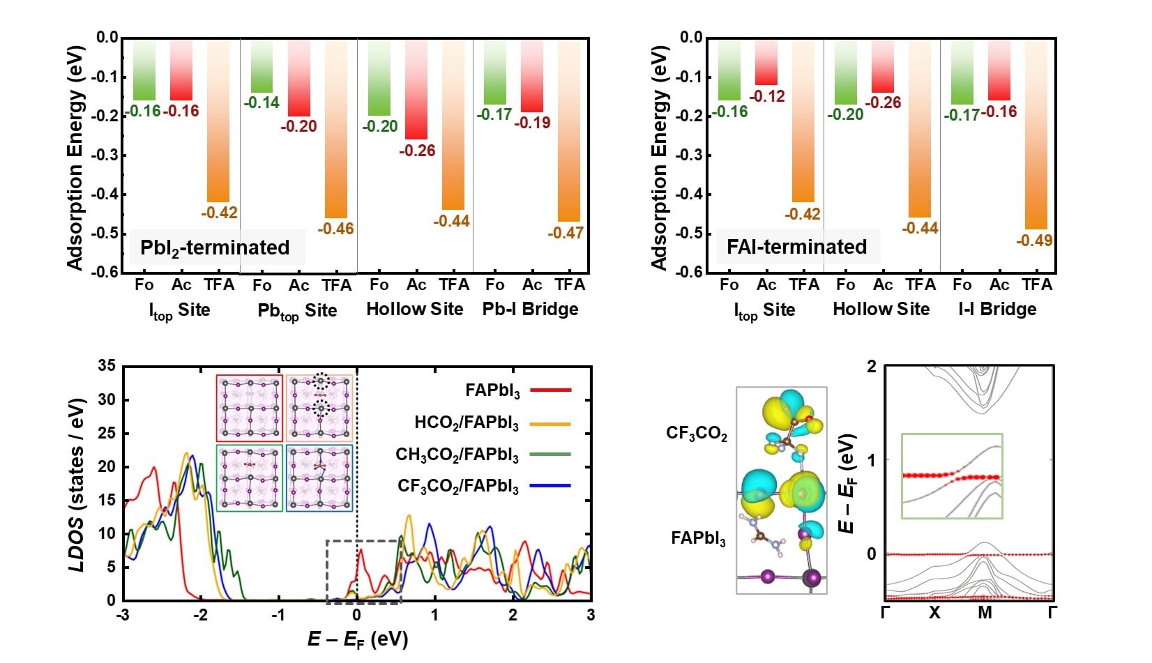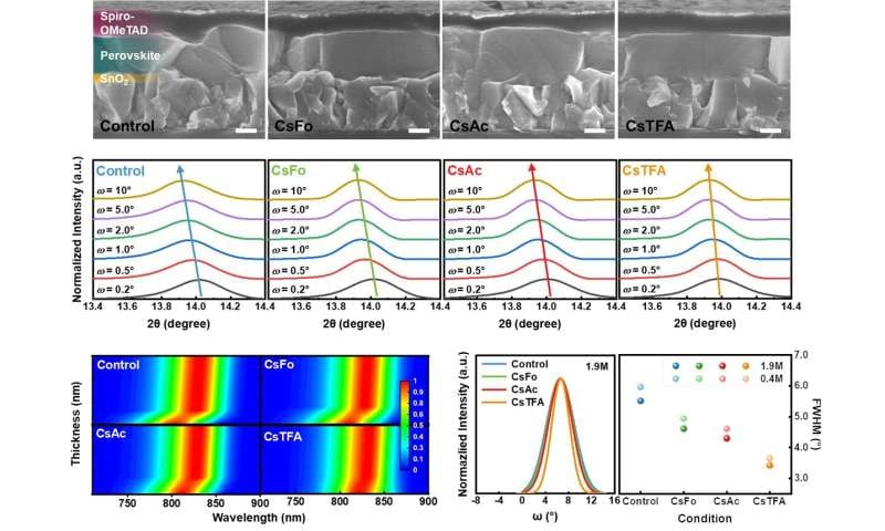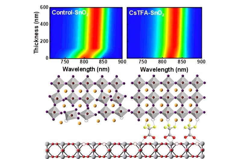 W celu zredukowania defektów naukowcy wprowadzili jony trifluorooctanu (TFA-) pomiędzy warstwę perowskitu i podłoże z tlenku cyny, służace jako warstwa transportu elektronów (ETL). Grupa karboksylanowa (-COO-) TFA- silnie wiąże się z tlenkiem cyny, zwiększając stabilność strukturalną. Jednocześnie organiczna grupa czołowa (-CF3) skutecznie redukuje defekty poprzez dwukierunkowe dostrajanie molekularne, które oddziałuje z warstwą perowskitu.