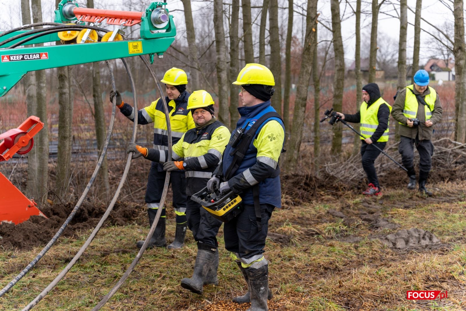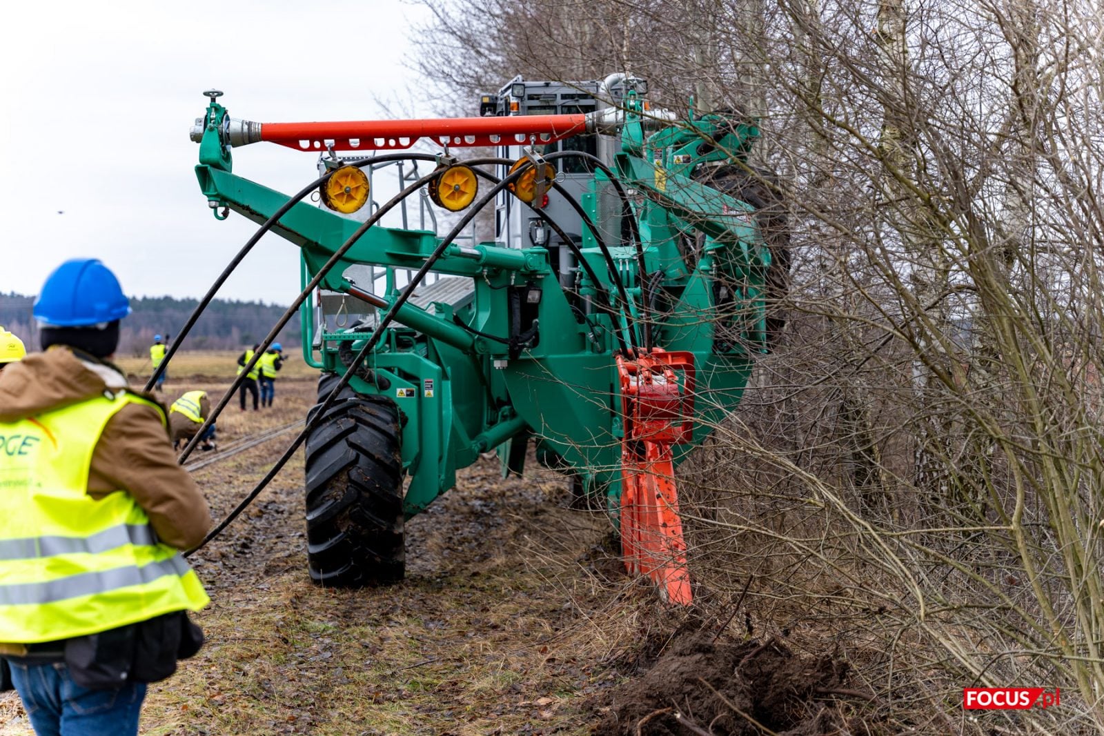 Kable są tutaj nie mniej ważne. Maszyna układa je na głębokości maksymalnie 2,5 metra i od razu przykrywa specjalną folią. Tak, żeby w przypadku ewentualnych prac w ziemi łatwo można było na nie trafić. Pług wykonuje bardzo wąską dziurę, bo o szerokości maksymalnie kilkunastu centymetrów. Po wszystkim wystarczy tylko zasypać ją, co można w prosty sposób zrobić za pomocą niewielkiej koparki.