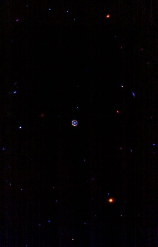 Kosmiczny Teleskop Jamesa Webba (JWST) dopiero zaczął swoje obserwacje Wszechświata, a już zaskakuje. Na obrazie galaktyki SPT-S J041839-4751.8 oddalonej od Ziemi o 12 mld lat świetlnych widać okrągłą strukturę, która ją otacza. To tzw. pierścień Einsteina, będący pewnego rodzaju złudzeniem optycznym. W rzeczywistości w pobliżu galaktyki nie ma niczego takiego – widzimy jedynie światło obiektu znajdującego się za galaktyką.