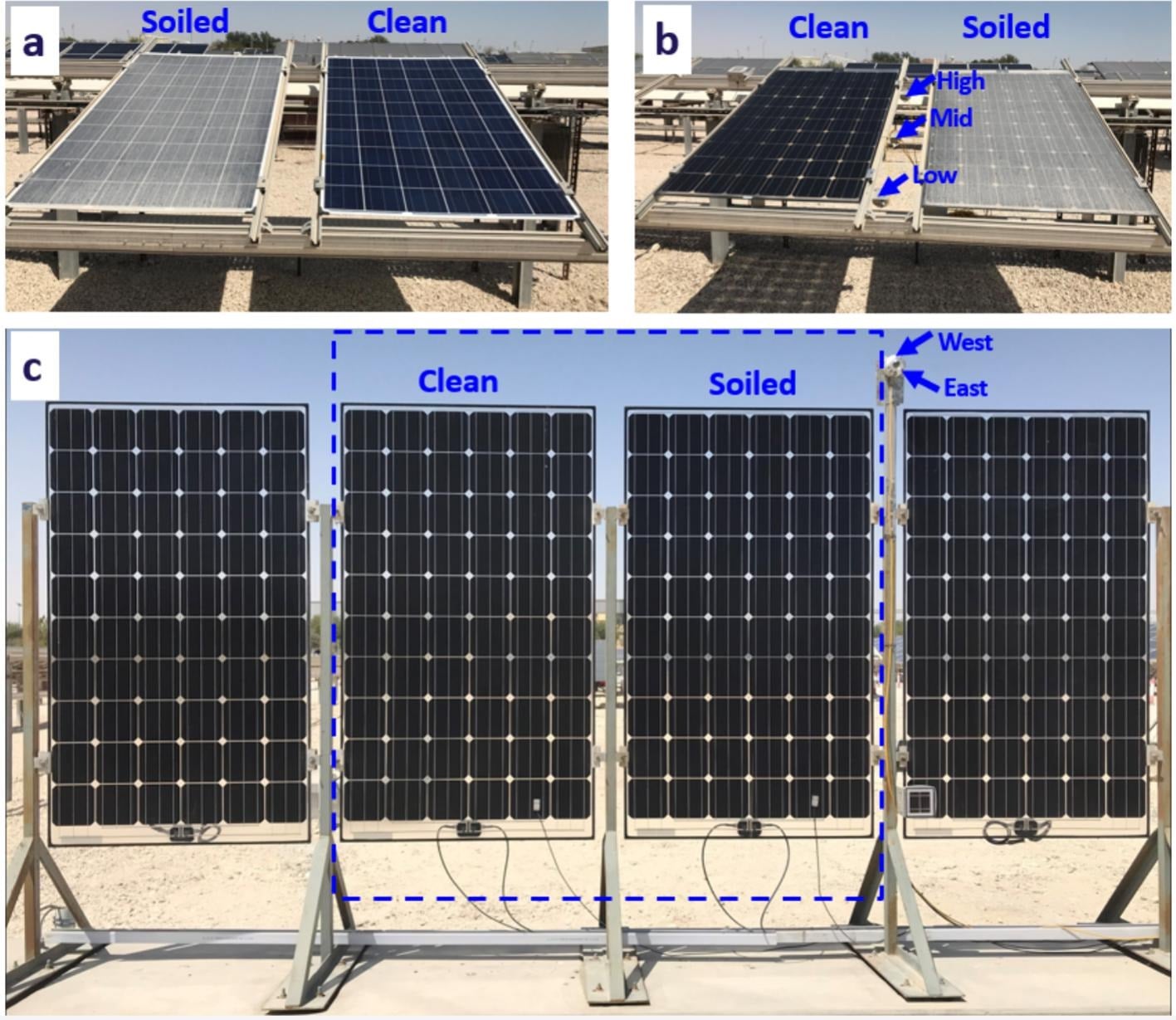 Zespół przeprowadził serię testów na krzemowych jedno- i dwustronnych modułach zamontowanych w Dosze, stolicy Kataru. Instalacja składała się z ośmiu paneli typu n o mocy 270 W, które postawiono na linii wschód-zachód. Cztery moduły (2 jedno- i 2 dwustronne) były nachylone pod niewielkim kątem do podłoża, a kolejne cztery (2 jedno- i 2 dwustronne) stały pionowo. Ponadto w trakcie badań jeden z paneli z każdej konfiguracji był celowo czyszczony co tydzień.