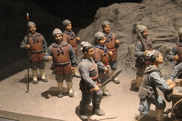 W roku 1644, kiedy Koxinga zaczynał studia akademickie, Państwo Środka pogrążone było w totalnym chaosie i pustoszone przez wielką chłopsą rebelię pod wodzą okrutnego watażki Li Zichnega. 25 kwietnia tegoż roku hordy żądnych krwi buntowników podeszły pod Pekin, a cesarz Chongzhen, nie widząc już innej możliwości ocalenia niż ucieczka w śmierć, powiesił się w ogrodach pałacowych. Następnego dnia eunuchowie otworzyli miejskie bramy, wpuszczając Li Zichnega i jego wyjącą hałastrę do stolicy. Rozpoczęła się orgia zniszczenia i rabunku, zwycięzcy mordowali każdego, kto nawinął im się pod rękę. Pechowo wśród ofiar rzezi znaleźli się najbliżsi generała Wu Sangui dowodzącego odcinkiem Wielkiego Muru broniącego cesarstwa przed jego północnymi sąsiadami – Mandżurami. Gdy wieści o śmierci rodziny doszły do młodego oficera, rozsierdzony dogadał się z barbarzyńcami, z którymi do tej pory walczył i otwarłszy bramy, wpuścił ich w obręb Państwa Środka. Wu liczył na to, że Mandżurowie zniszczą buntowników, a potem wrócą do siebie, on zaś wykorzysta powstałą w ten sposób próżnię, by samemu ukoronować się na cesarza i założyć nową dynastię. Okazał się zadziwiająco naiwny, przybysze z północy ani myśleli oddać raz zdobytego Pekinu i zainstalowali na tronie własny ród panujący, historykom znany jako dynastia Qing.