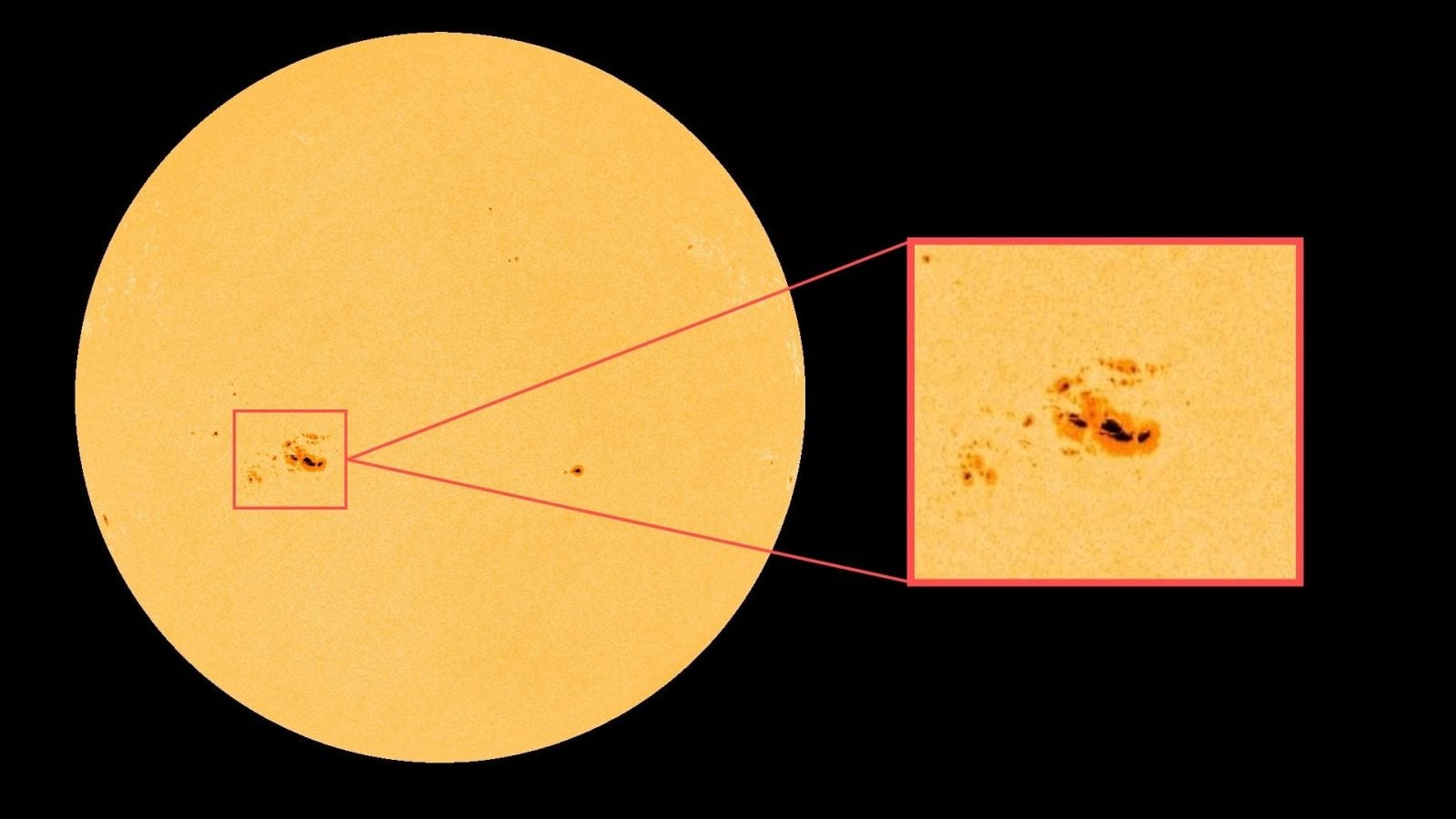 AR3576, bo taki numer katalogowy otrzymała widoczna na zdjęciach i nagraniach gigantyczna grupa plam słonecznych ma średnicę blisko 200 000 kilometrów i składa się z co najmniej czterech wyraźnych ciemnych plam, z których każda jest znacznie większa od naszej planety.