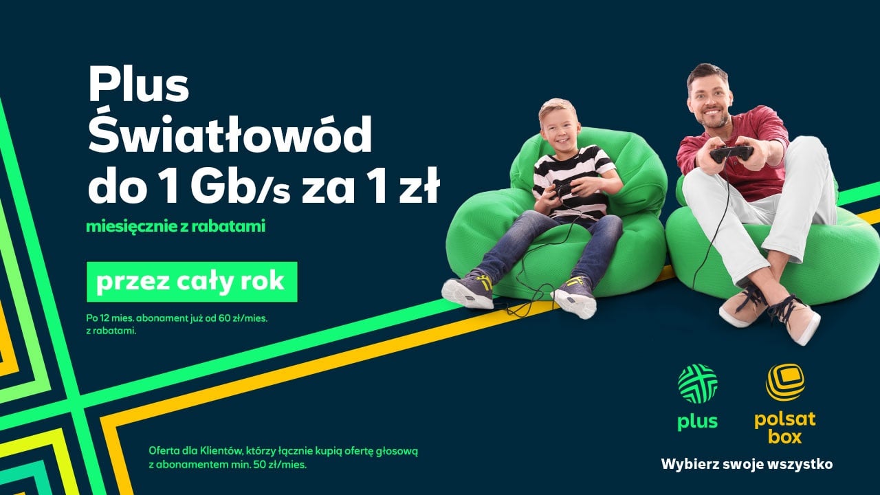 Połączenie usług światłowodowych i komórkowych także przynosi znaczącą korzyść dla portfela – klienci posiadający abonament telefoniczny, którzy przedłużają umowę lub Ci którzy jednocześnie kupują abonament głosowy za min. 50 zł/mies. oraz internet światłowodowy mogą otrzymać światłowód o szybkości do 1 Gb/s za zaledwie 1 zł/mies. przez pierwszy rok trwania umowy. Jednak, jeśli nie masz innych usług w Plusie to również możesz zaoszczędzić na połączeniu światłowodowym – przez pierwsze 6 miesięcy zapłacisz tylko 1 zł/mies.